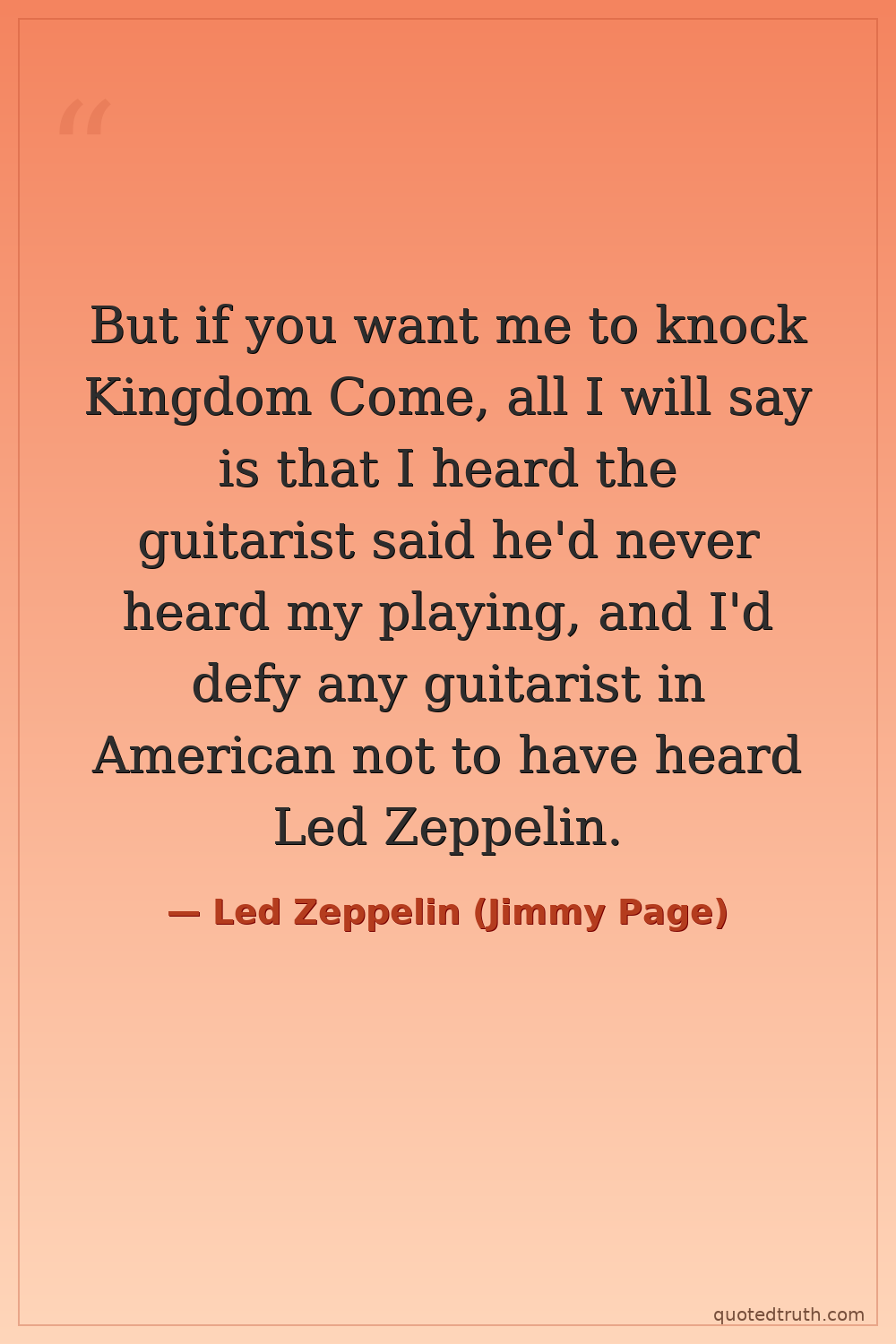 But if you want me to knock Kingdom Come, all I will say is that I heard the guitarist said he'd never heard my playing, and I'd defy any guitarist in American not to have heard Led Zeppelin.
