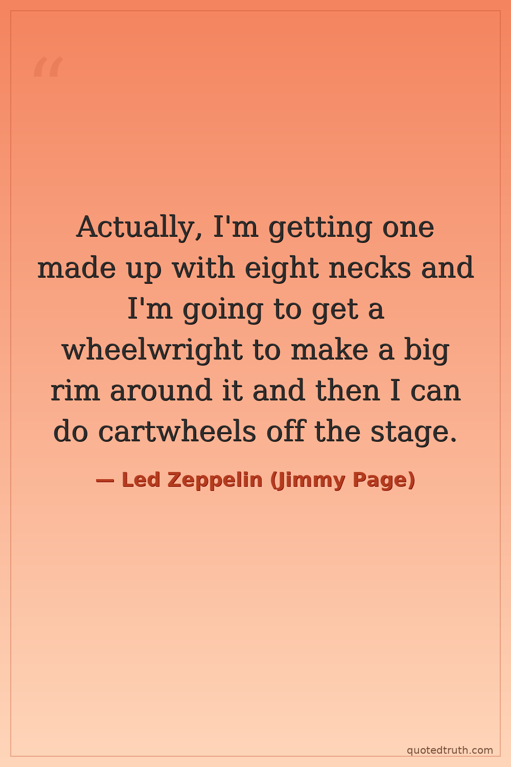 Actually, I'm getting one made up with eight necks and I'm going to get a wheelwright to make a big rim around it and then I can do cartwheels off the stage.