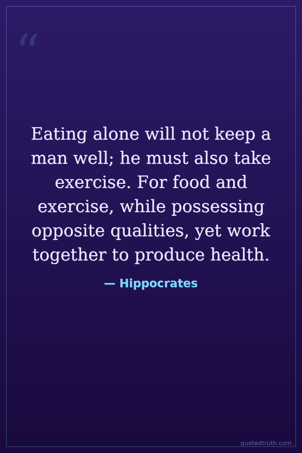 Eating alone will not keep a man well; he must also take exercise. For food and exercise, while possessing opposite qualities, yet work together to produce health.