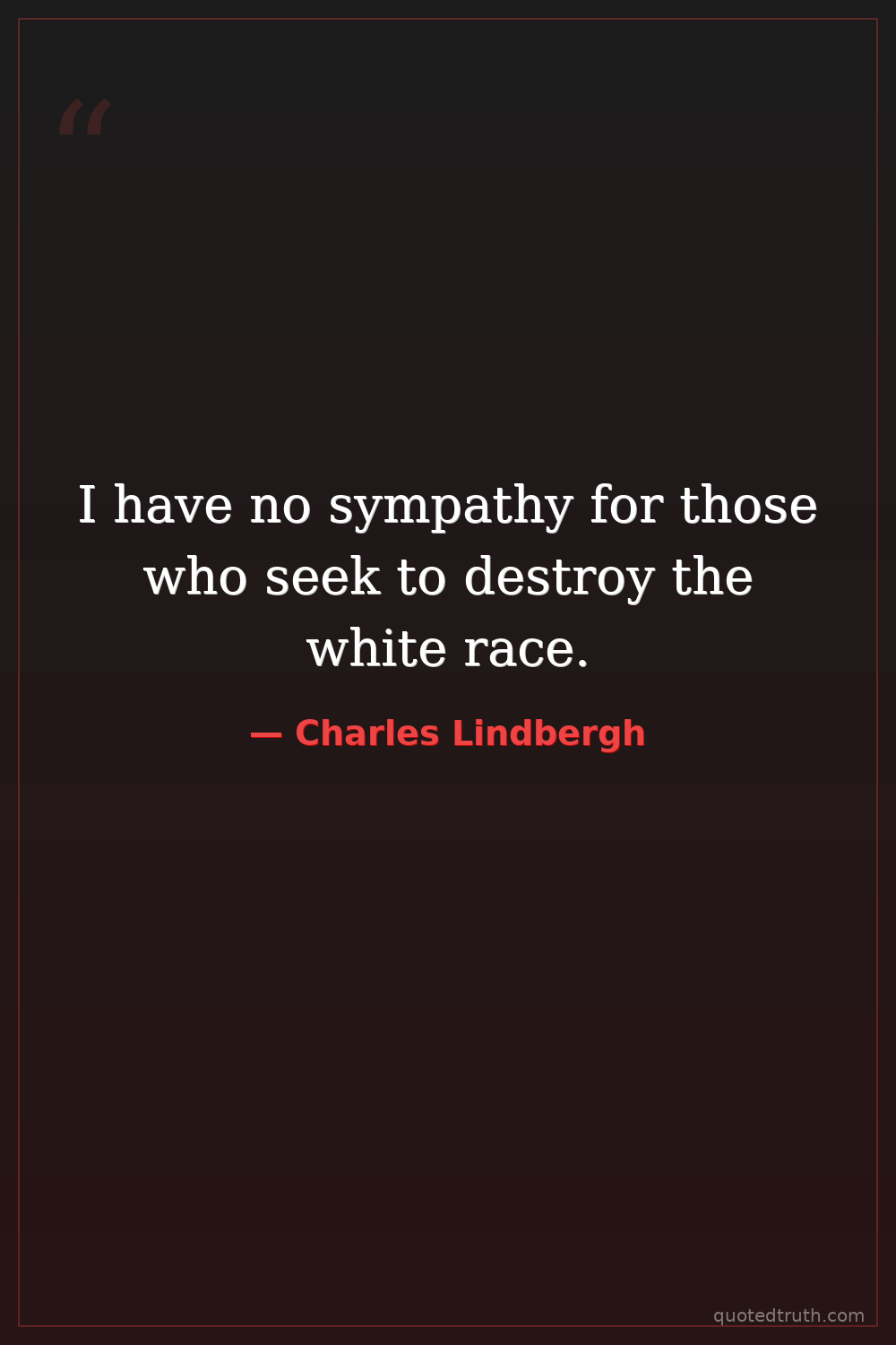 Controversial"The only way our civilization can survive is through the strength and purity of its blood. We must have a Western Wall of blood. If we don't, we will be engulfed by the Asiatic and African races."