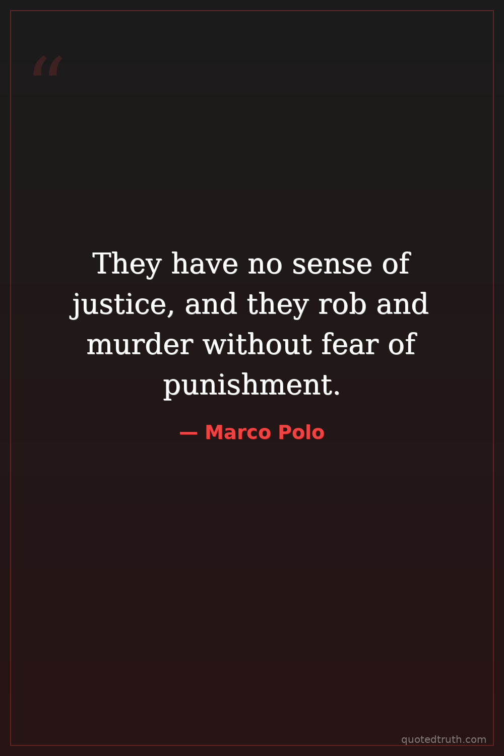 They have no sense of justice, and they rob and murder without fear of punishment.