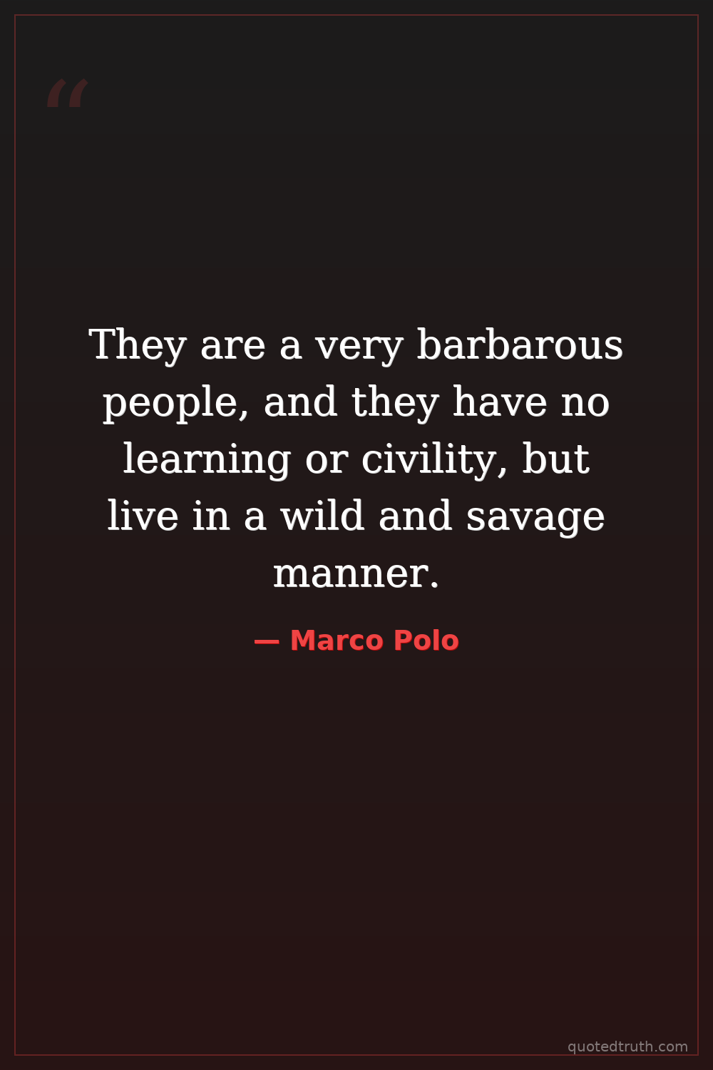 They are a very barbarous people, and they have no learning or civility, but live in a wild and savage manner.