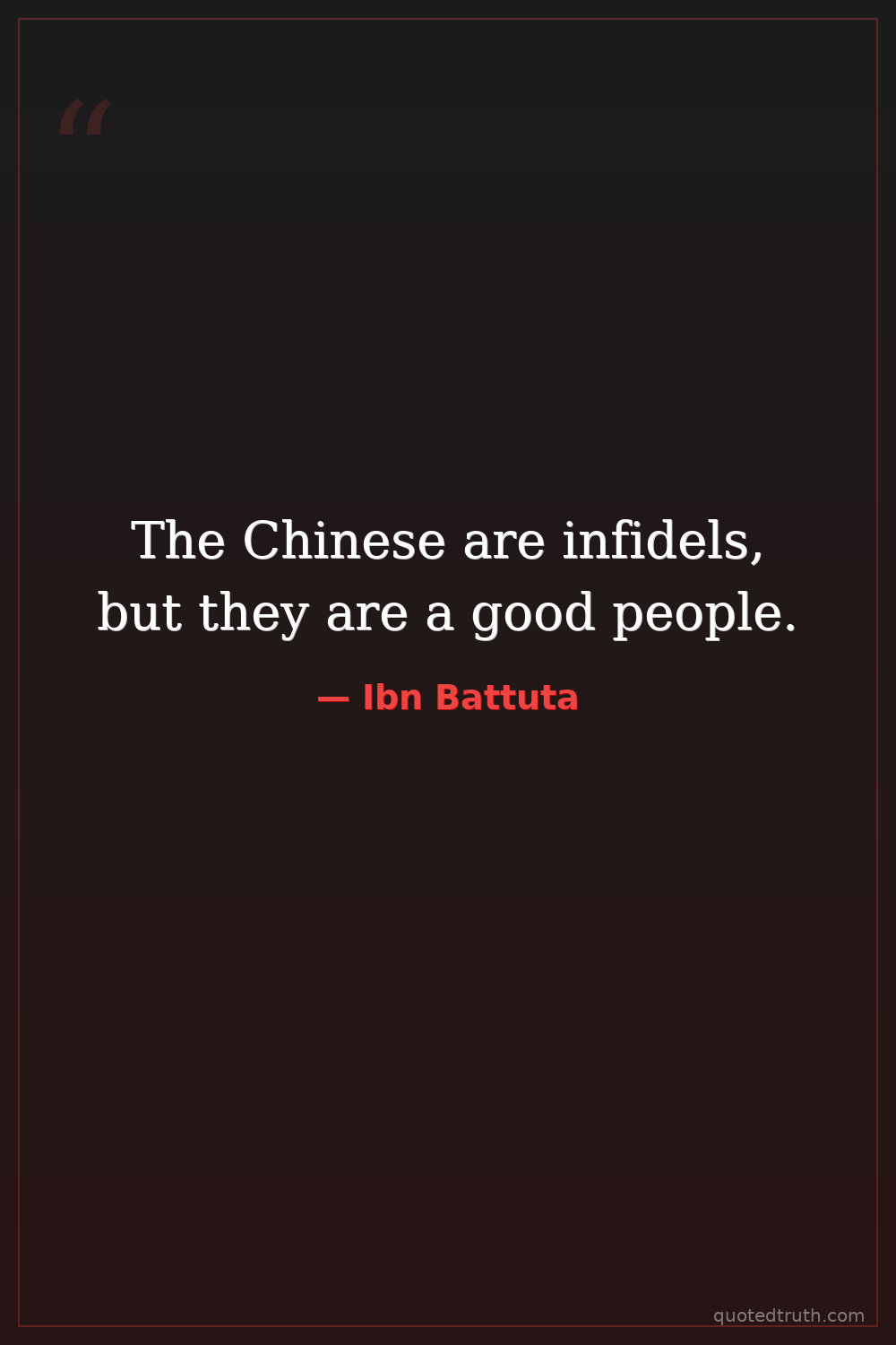 The Chinese are infidels, but they are a good people.