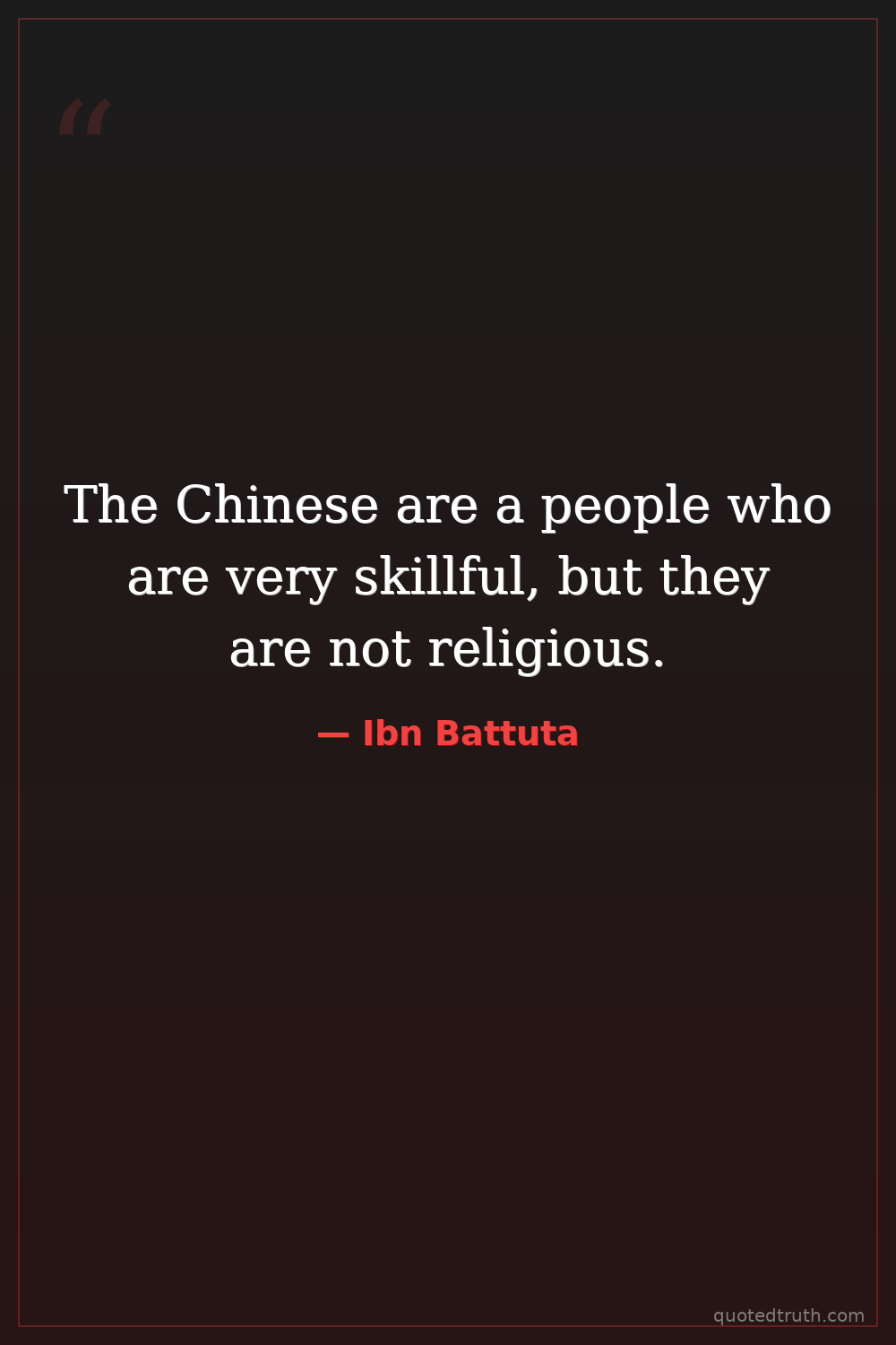 "The Chinese are skilled in crafts, but they are not a people of religion."