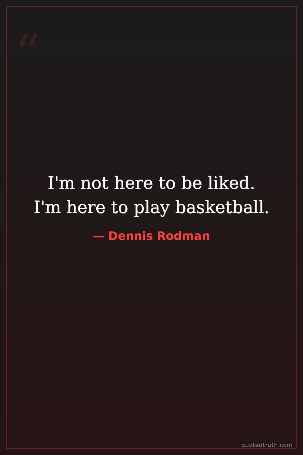 Philosophical"When I cross-dress now, it's just another way I can show all the sides of Dennis Rodman. I'm giving you the whole package. I'm becoming the all-purpose person."