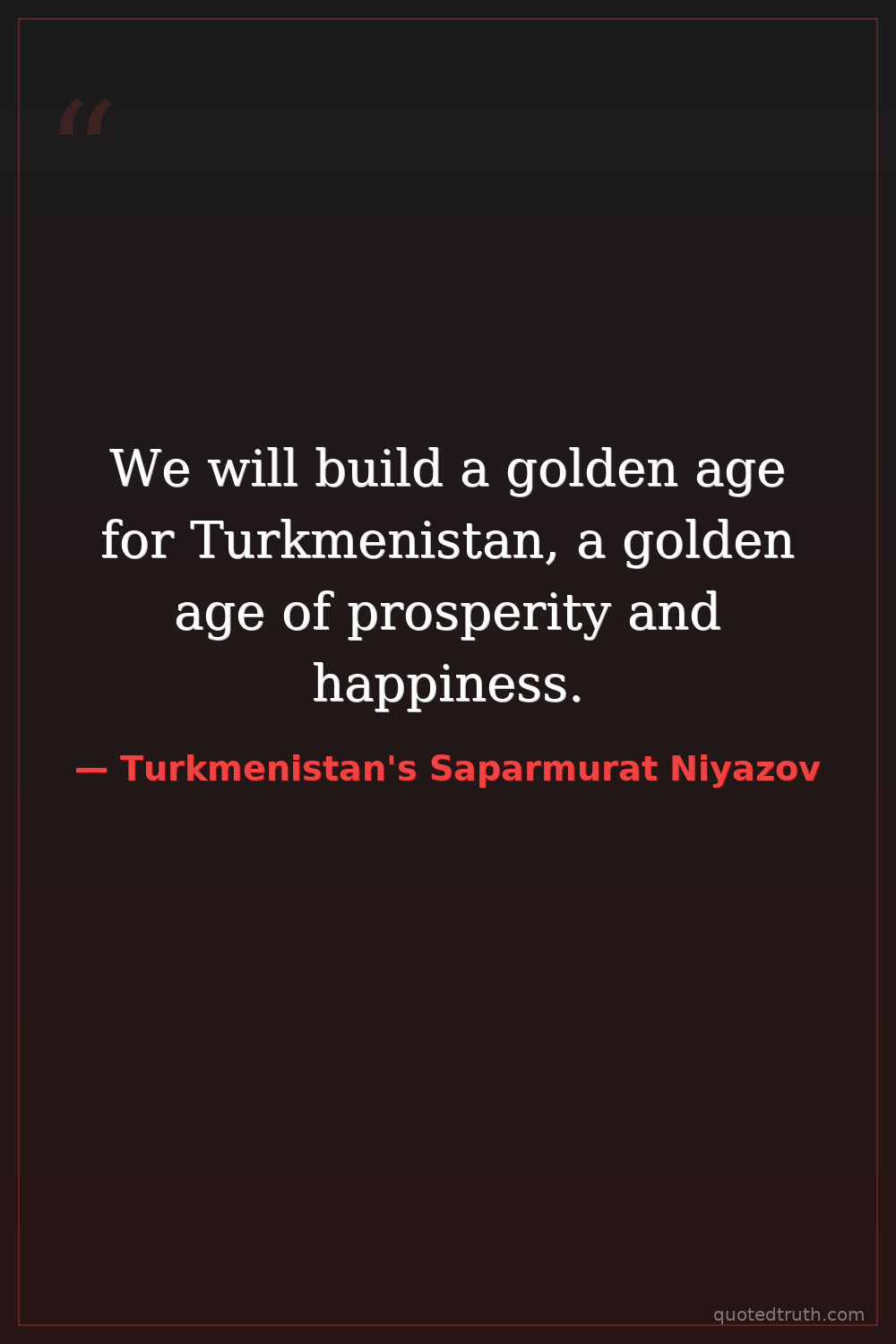 We will build a golden age for Turkmenistan, a golden age of prosperity and happiness.