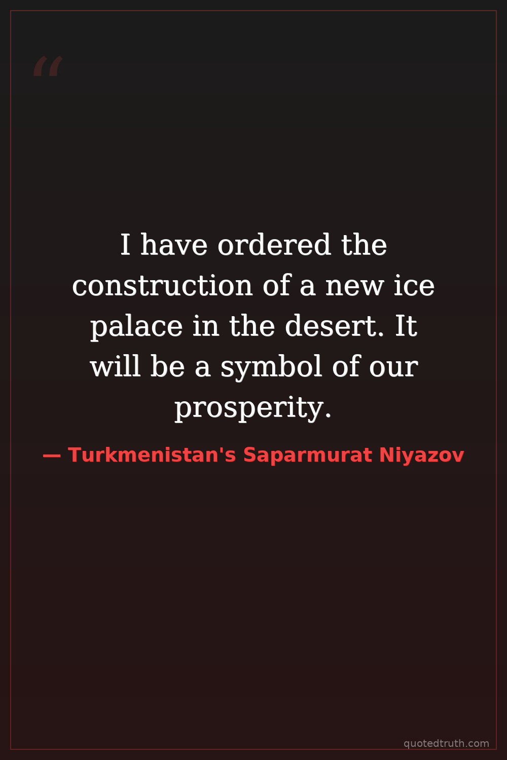 I have ordered the construction of a new ice palace in the desert. It will be a symbol of our prosperity.