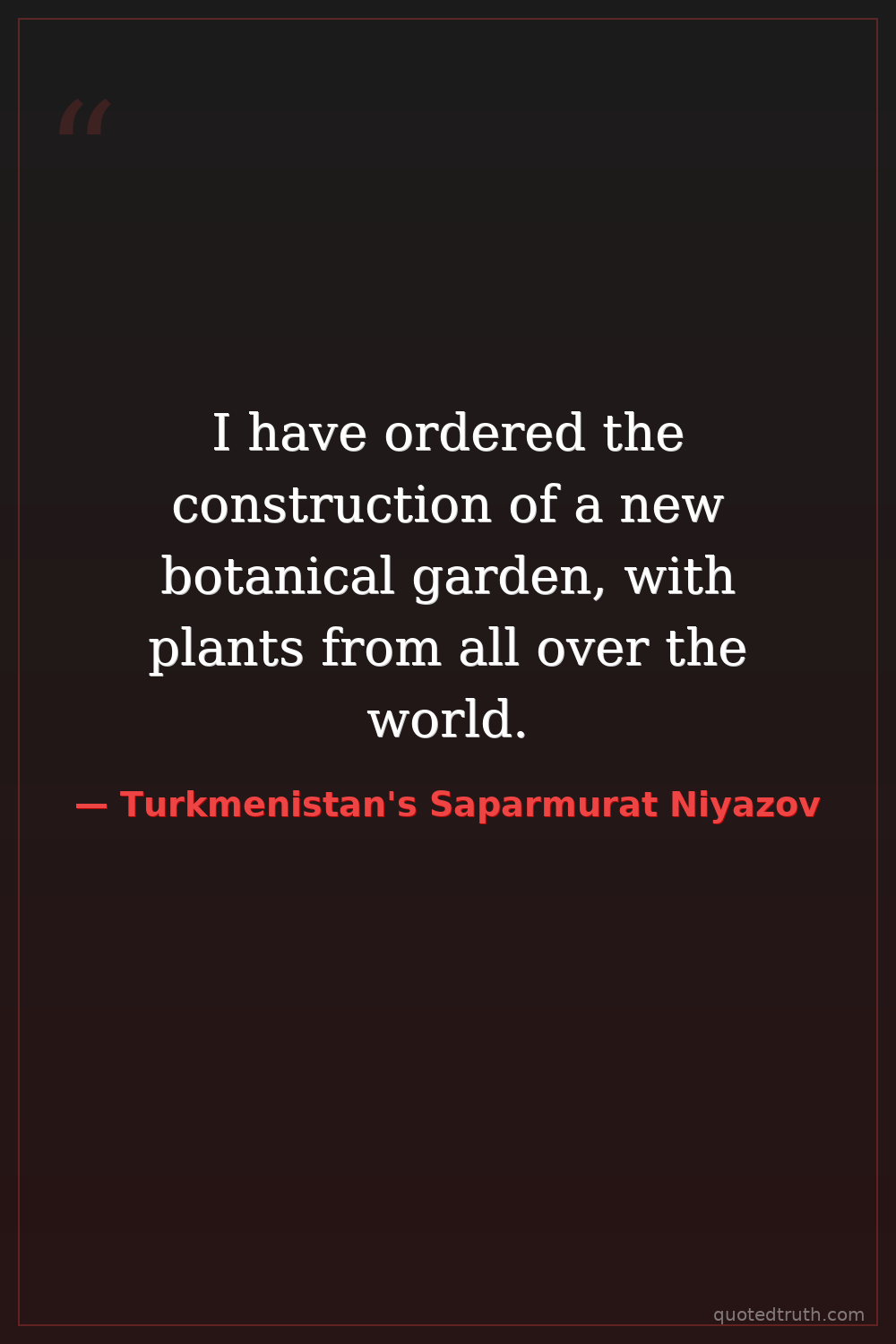 I have ordered the construction of a new botanical garden, with plants from all over the world.