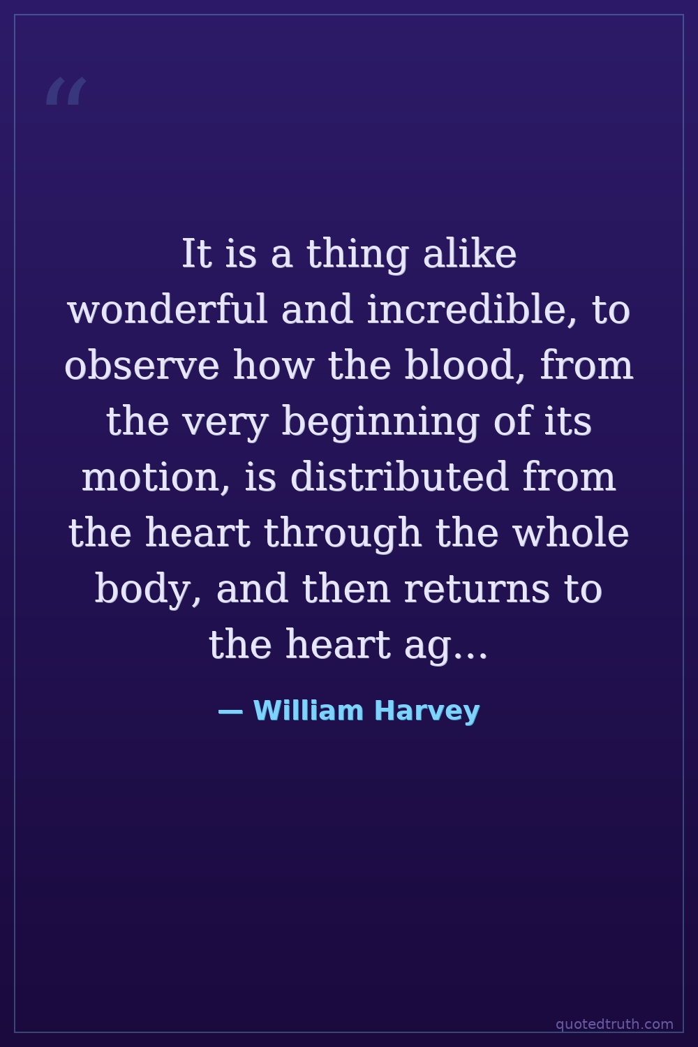 It is a thing alike wonderful and incredible, to observe how the blood, from the very beginning of its motion, is distributed from the heart through the whole body, and then returns to the heart again.
