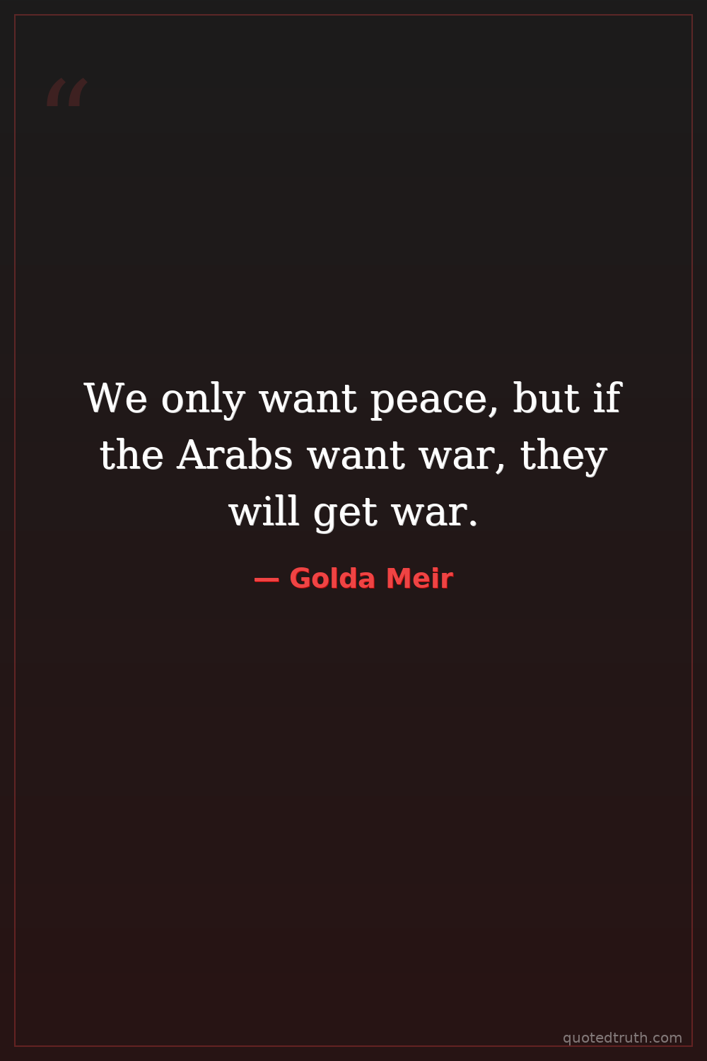 We only want peace, but if the Arabs want war, they will get war.