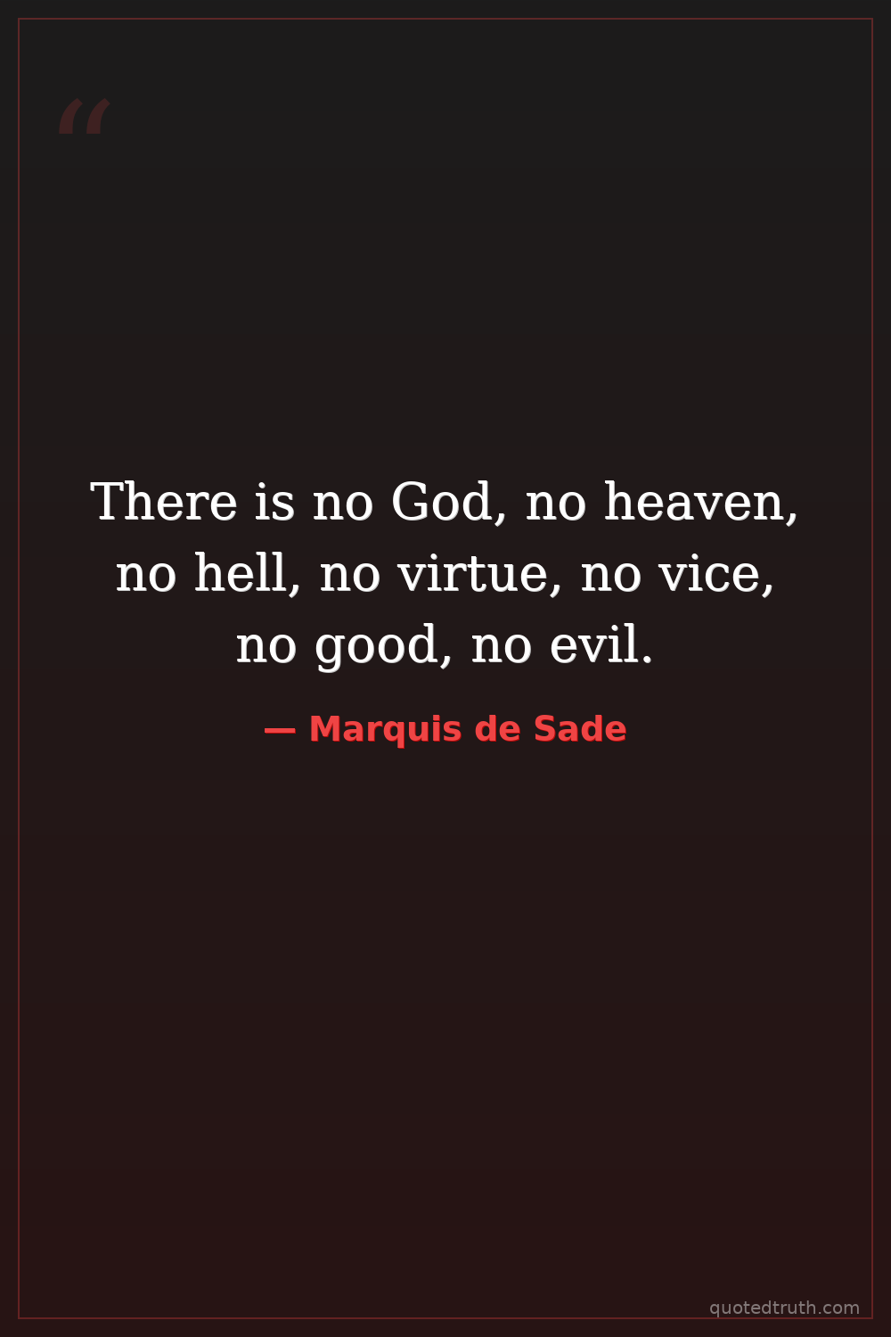 There is no God, no heaven, no hell, no virtue, no vice, no good, no evil.