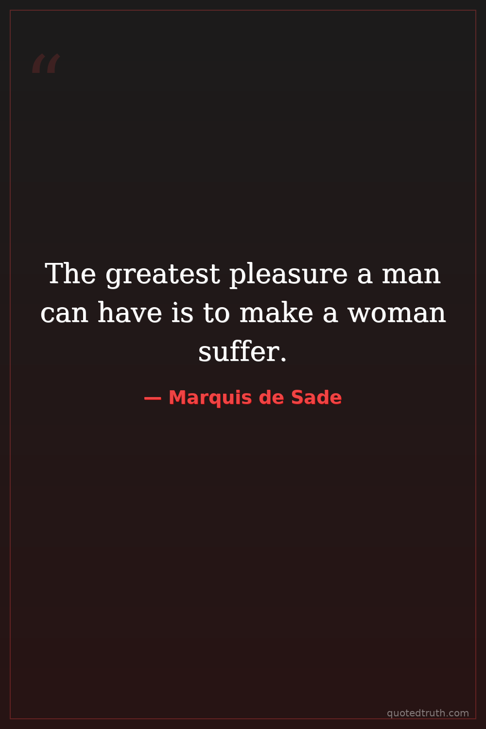 The greatest pleasure a man can have is to make a woman suffer.