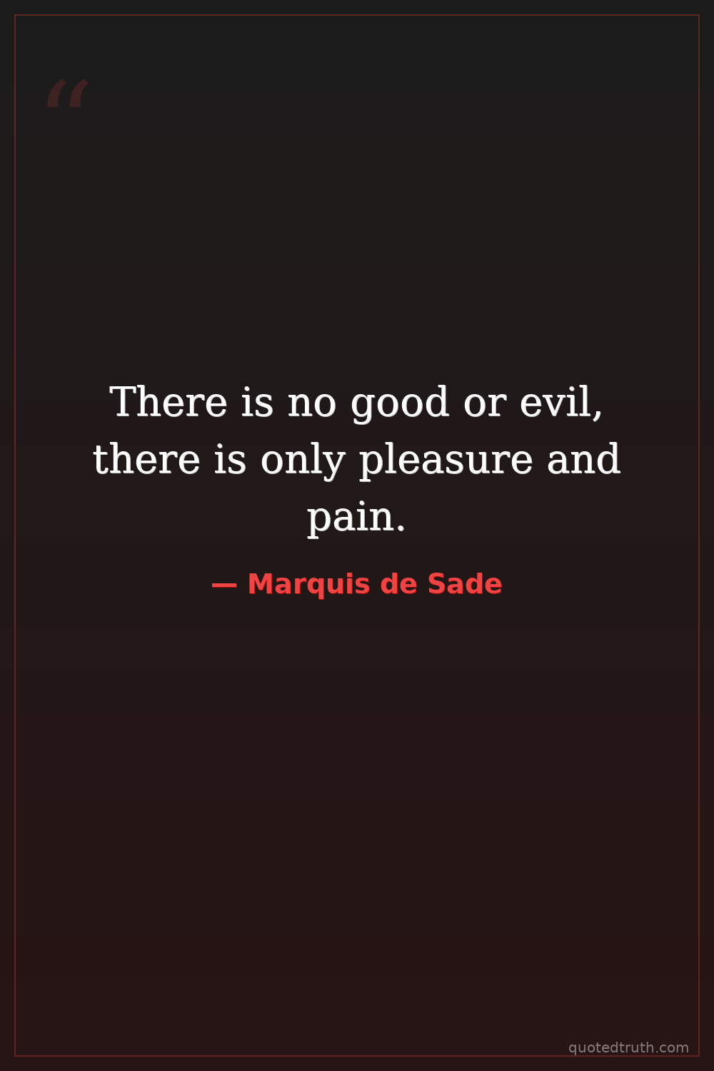 There is no good or evil, there is only pleasure and pain.