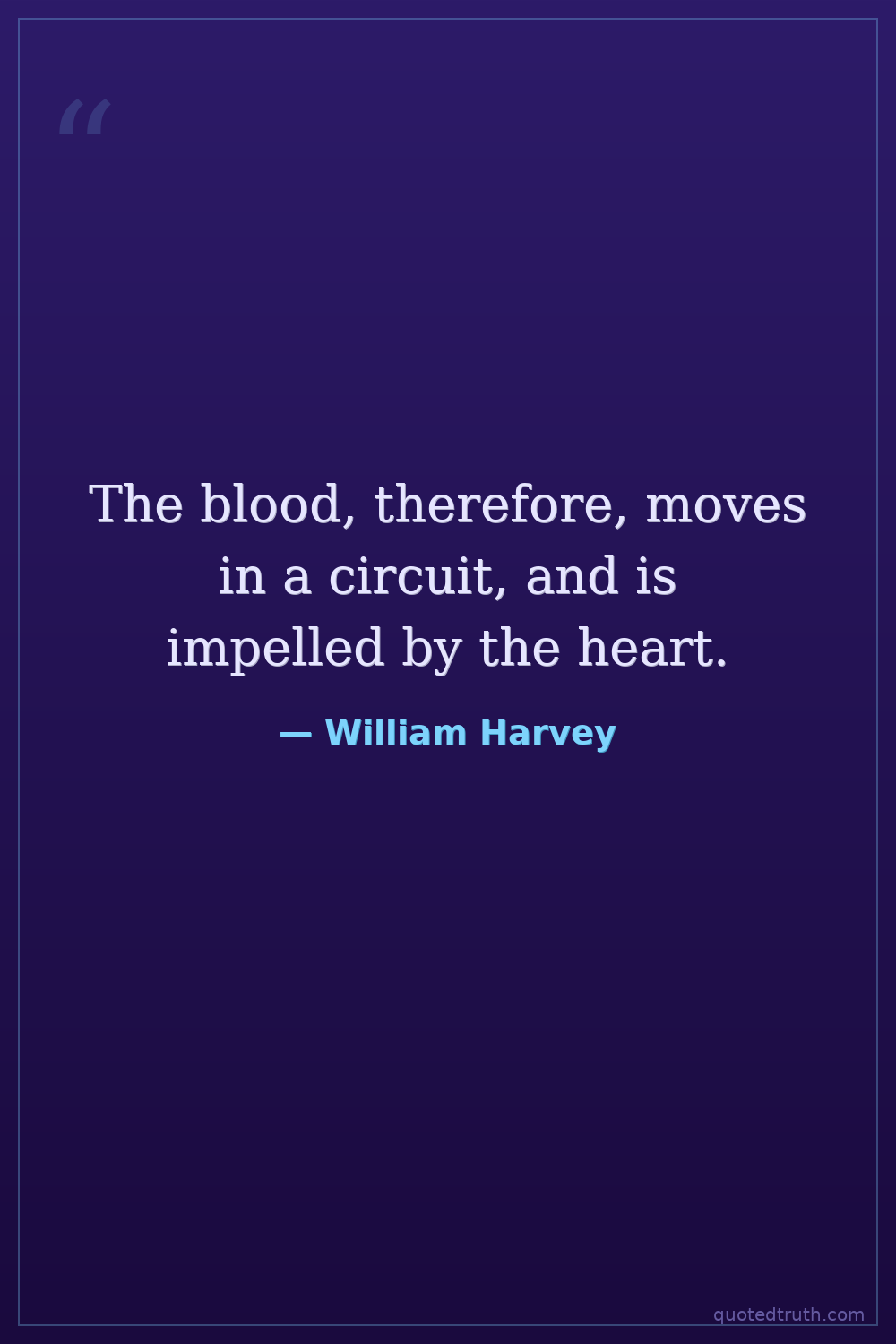 Philosophical"It is a thing alike wonderful and incredible, to observe how the blood, from the very beginning of its motion, is distributed from the heart through the whole body, and then returns to the heart again…"