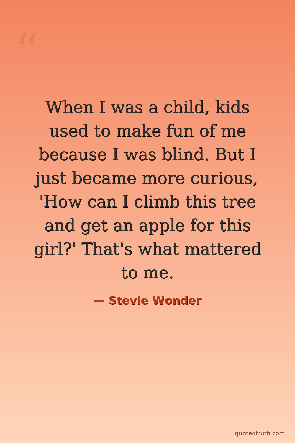 When I was a child, kids used to make fun of me because I was blind. But I just became more curious, 'How can I climb this tree and get an apple for this girl?' That's what mattered to me.