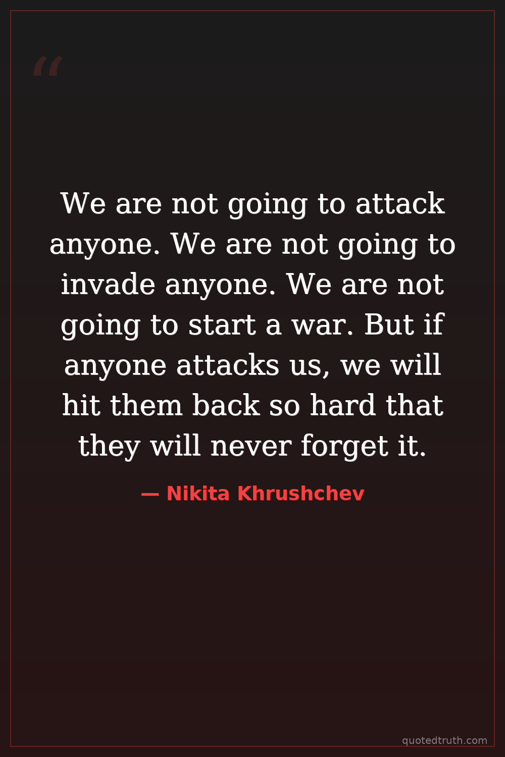 We are not going to attack anyone. We are not going to invade anyone. We are not going to start a war. But if anyone attacks us, we will hit them back so hard that they will never forget it.