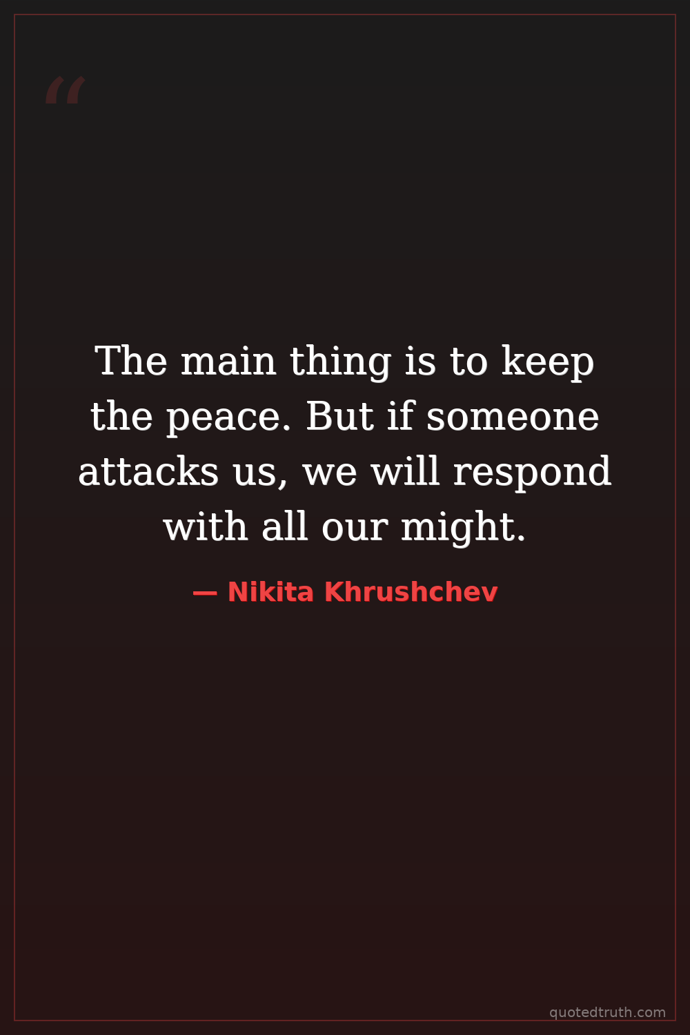 Controversial"We are not afraid of capitalism. We are not afraid of imperialism. We are not afraid of anything. We are only afraid of one thing: that we will not be able to build communism fast enough."