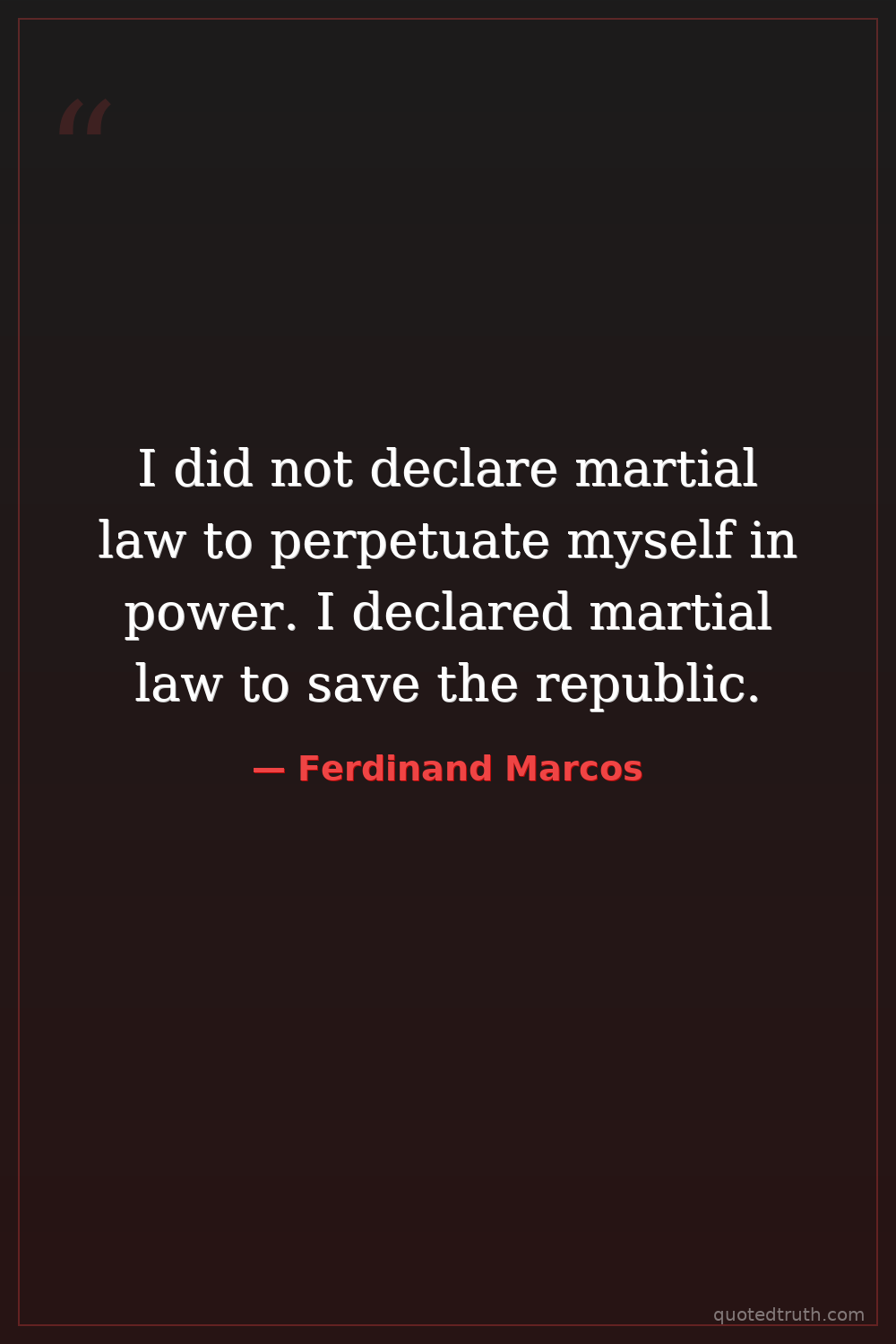 I did not declare martial law to perpetuate myself in power. I declared martial law to save the republic.