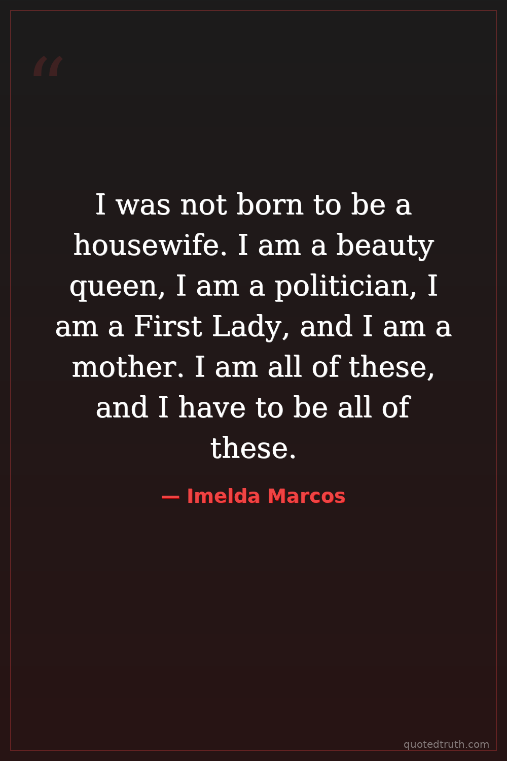 I was not born to be a housewife. I am a beauty queen, I am a politician, I am a First Lady, and I am a mother. I am all of these, and I have to be all of these.