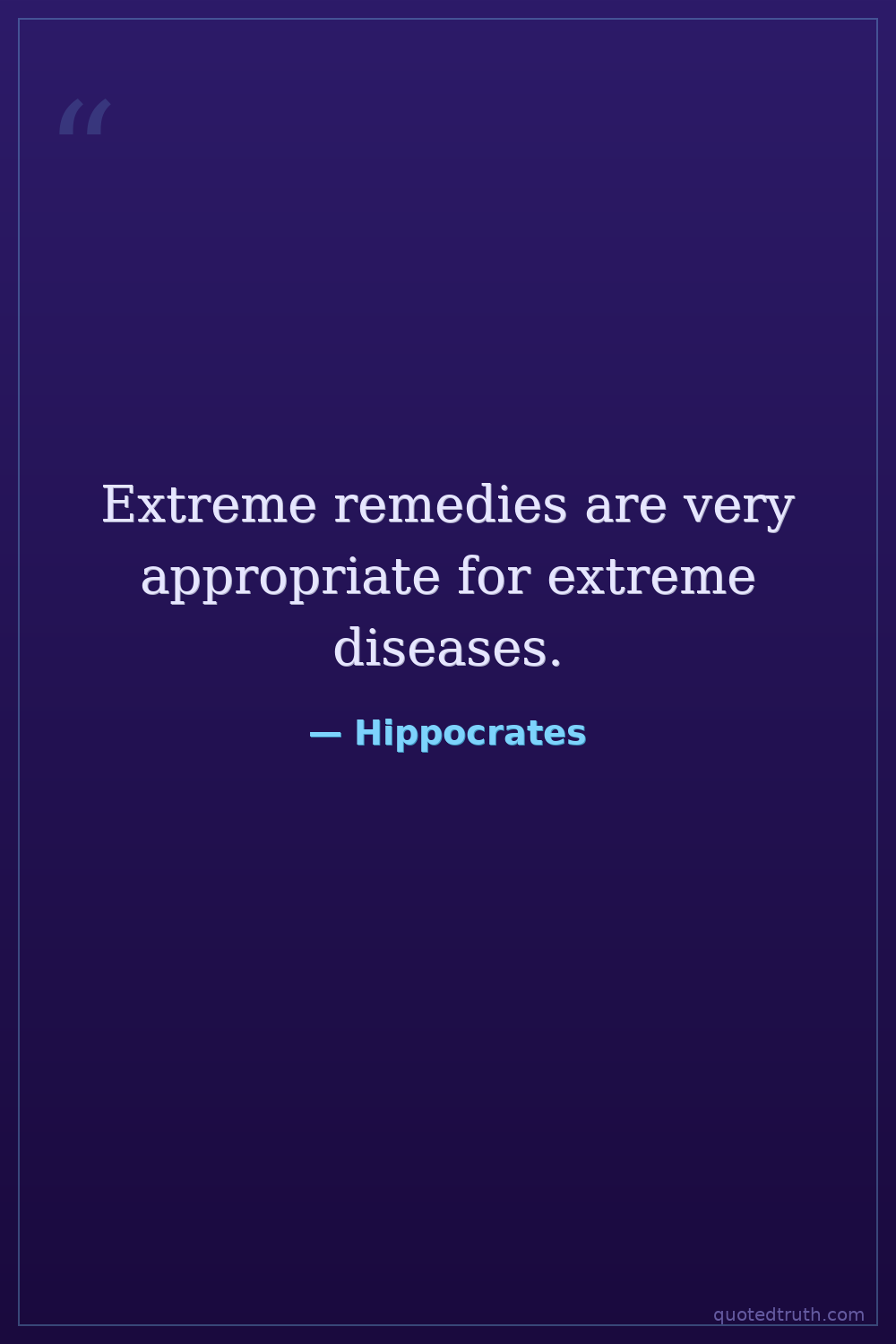 Extreme remedies are very appropriate for extreme diseases.