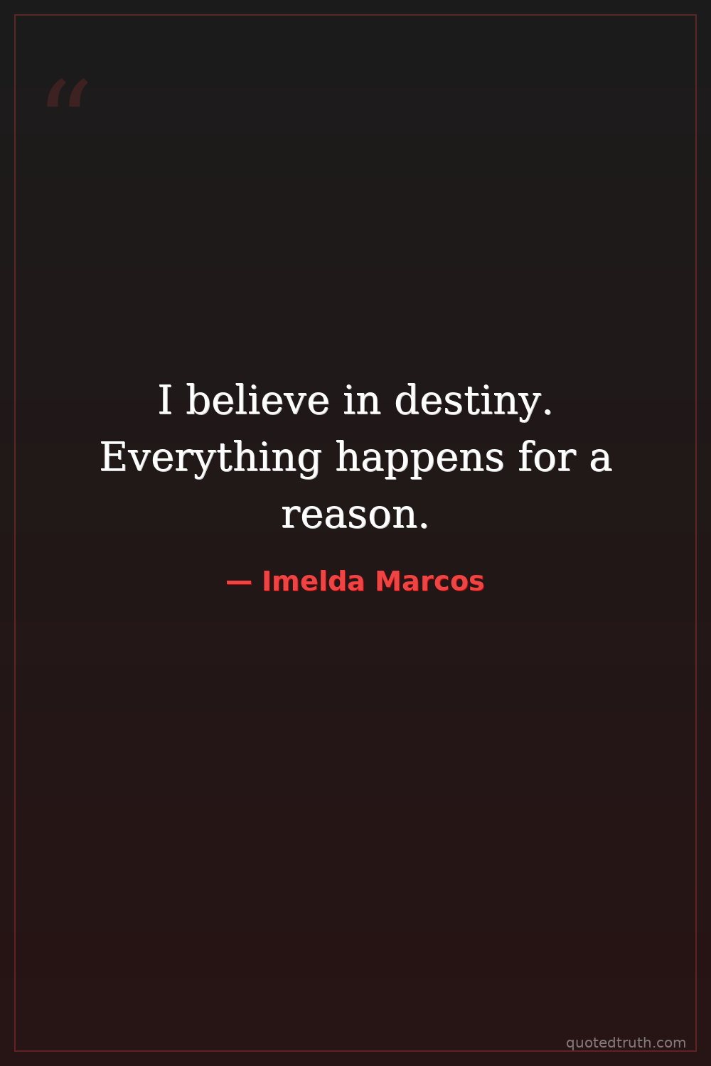 I believe in destiny. Everything happens for a reason.