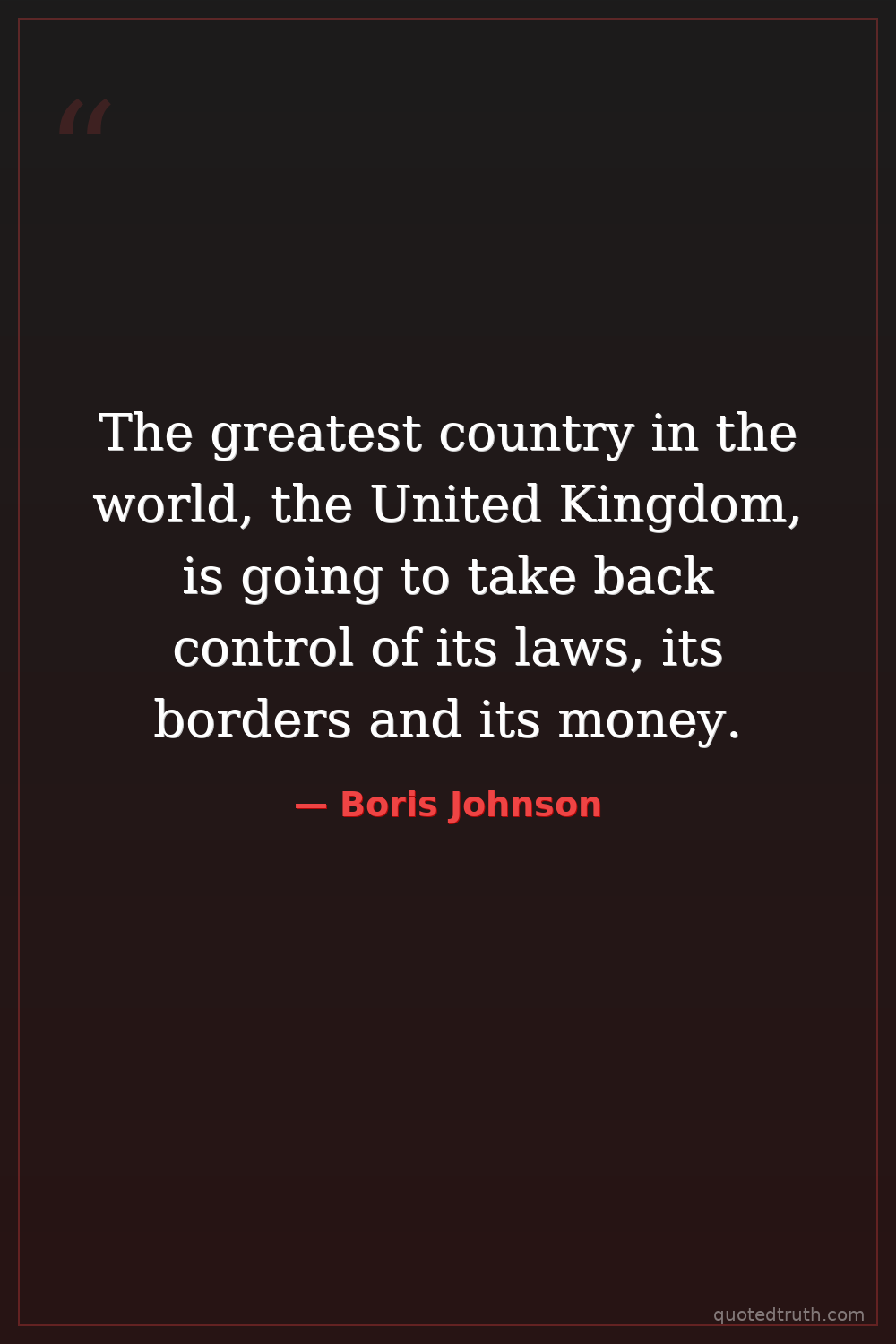 The greatest country in the world, the United Kingdom, is going to take back control of its laws, its borders and its money.