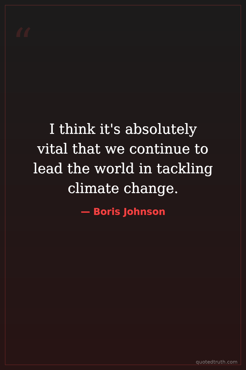 I think it's absolutely vital that we continue to lead the world in tackling climate change.