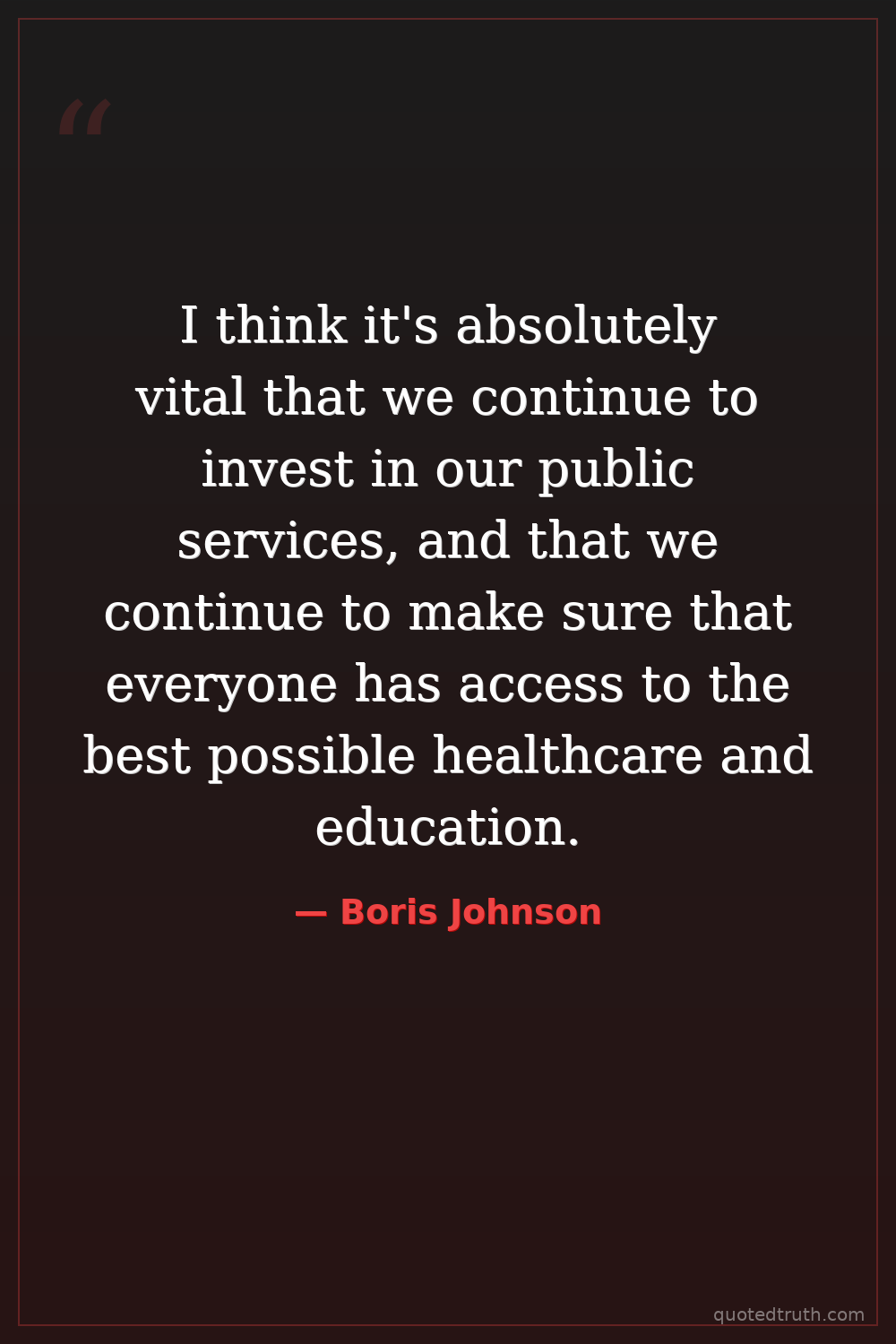 I think it's absolutely vital that we continue to invest in our public services, and that we continue to make sure that everyone has access to the best possible healthcare and education.