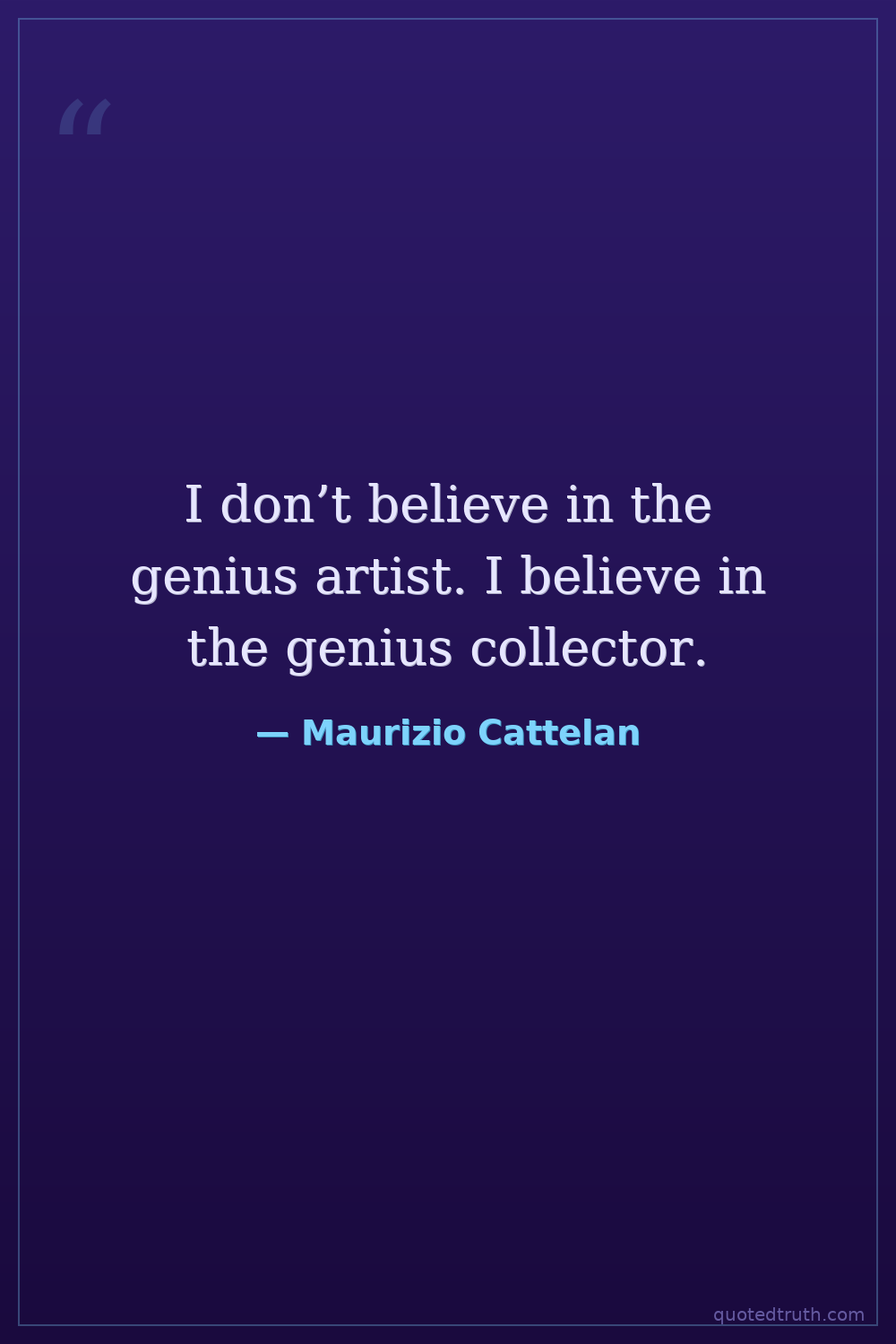 I don’t believe in the genius artist. I believe in the genius collector.