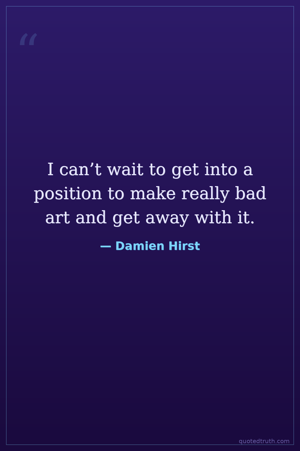 I can’t wait to get into a position to make really bad art and get away with it.