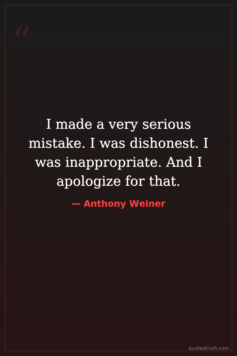 I made a very serious mistake. I was dishonest. I was inappropriate. And I apologize for that.