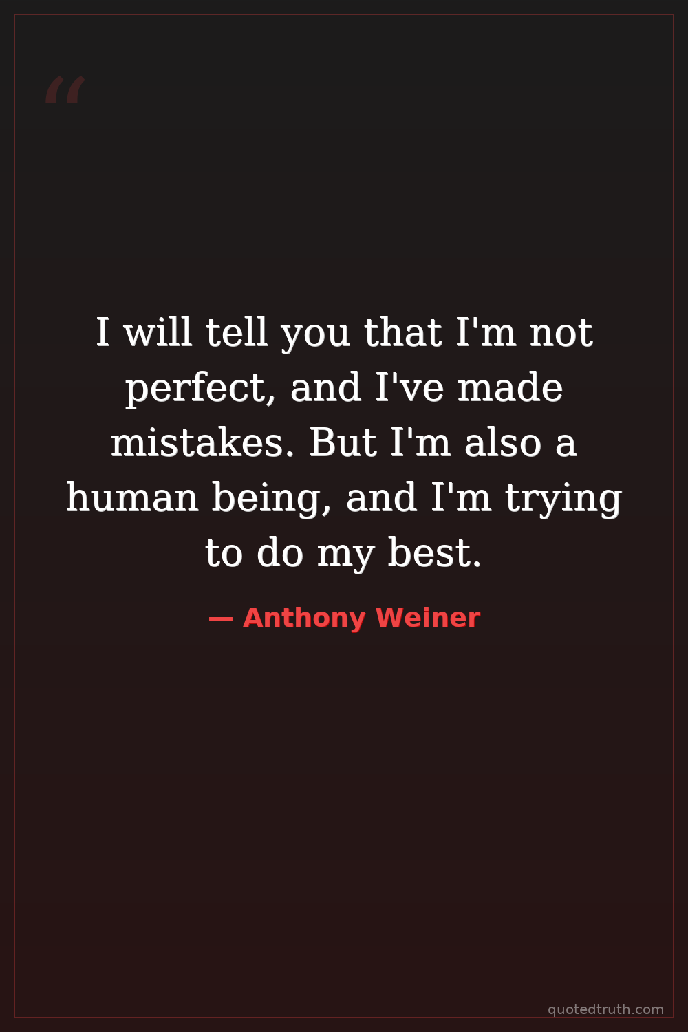 I will tell you that I'm not perfect, and I've made mistakes. But I'm also a human being, and I'm trying to do my best.