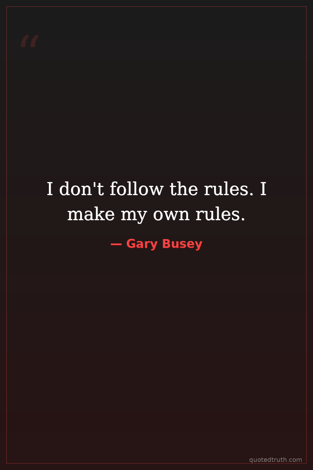 I don't follow the rules. I make my own rules.