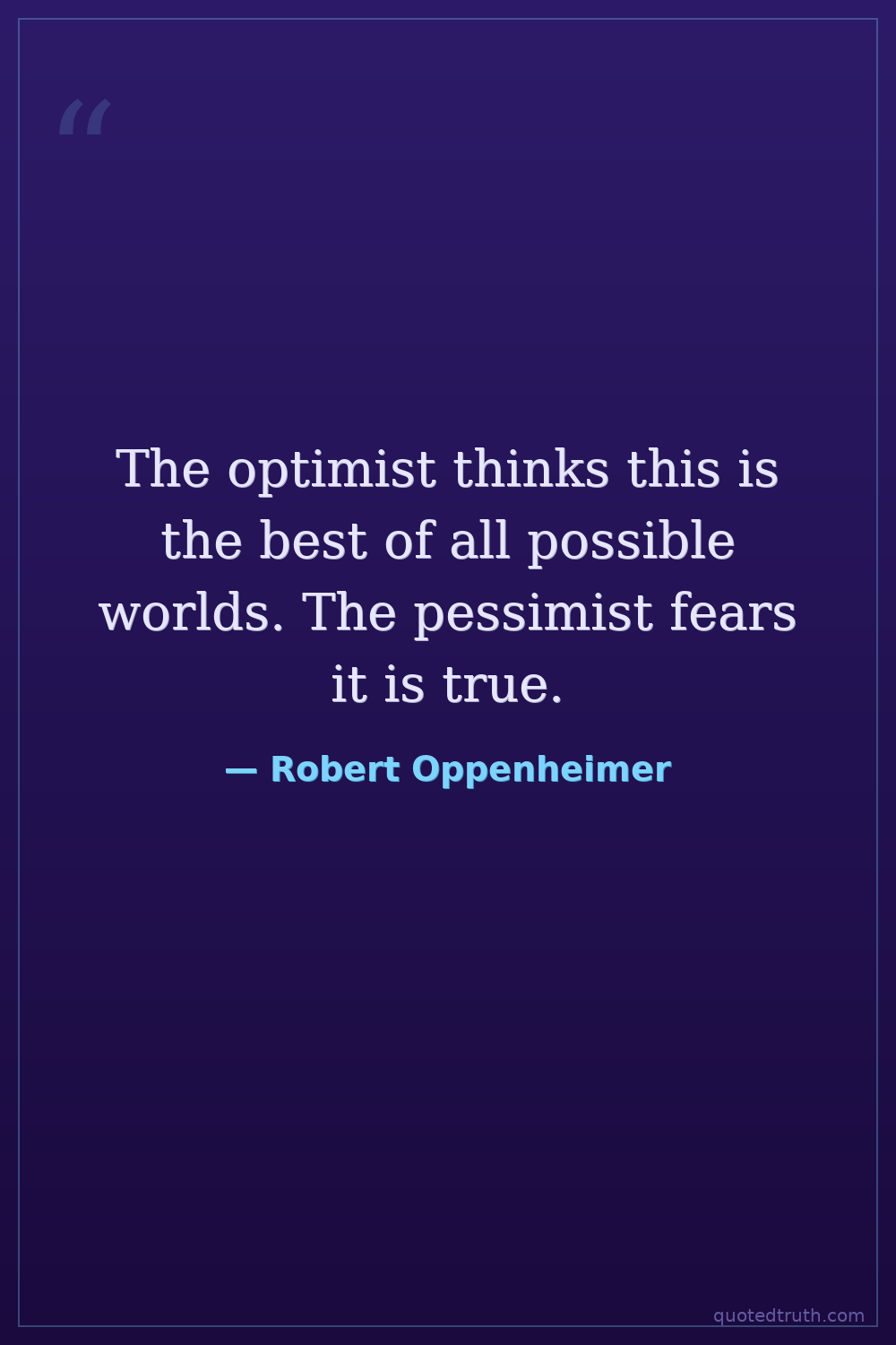 The optimist thinks this is the best of all possible worlds. The pessimist fears it is true.