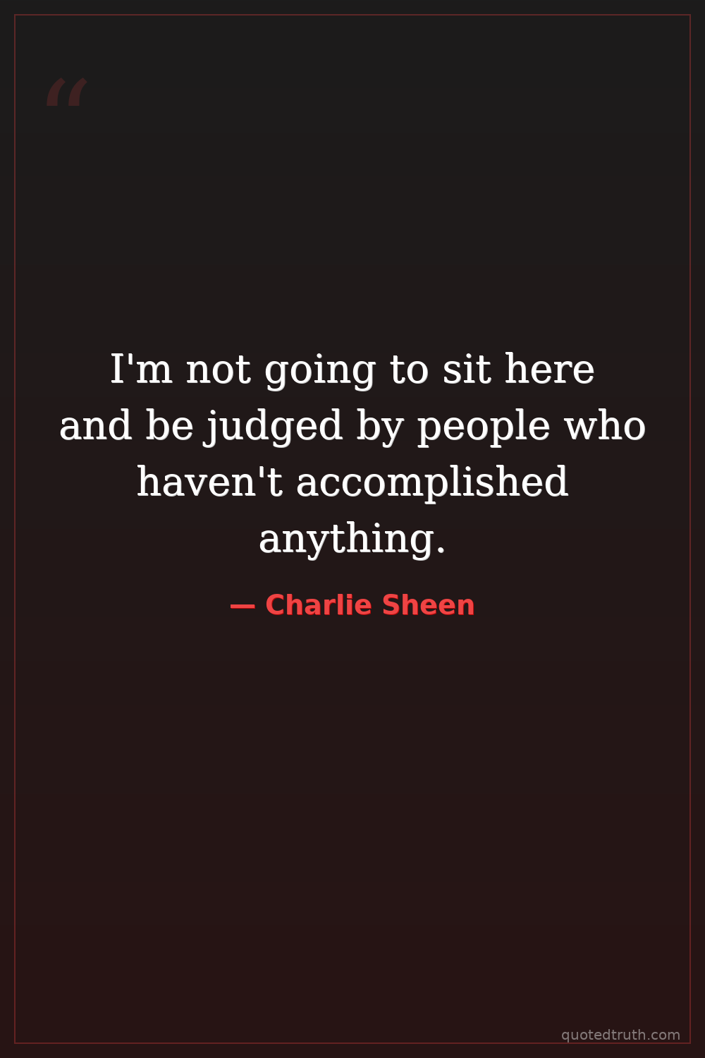 I'm not going to sit here and be judged by people who haven't accomplished anything.