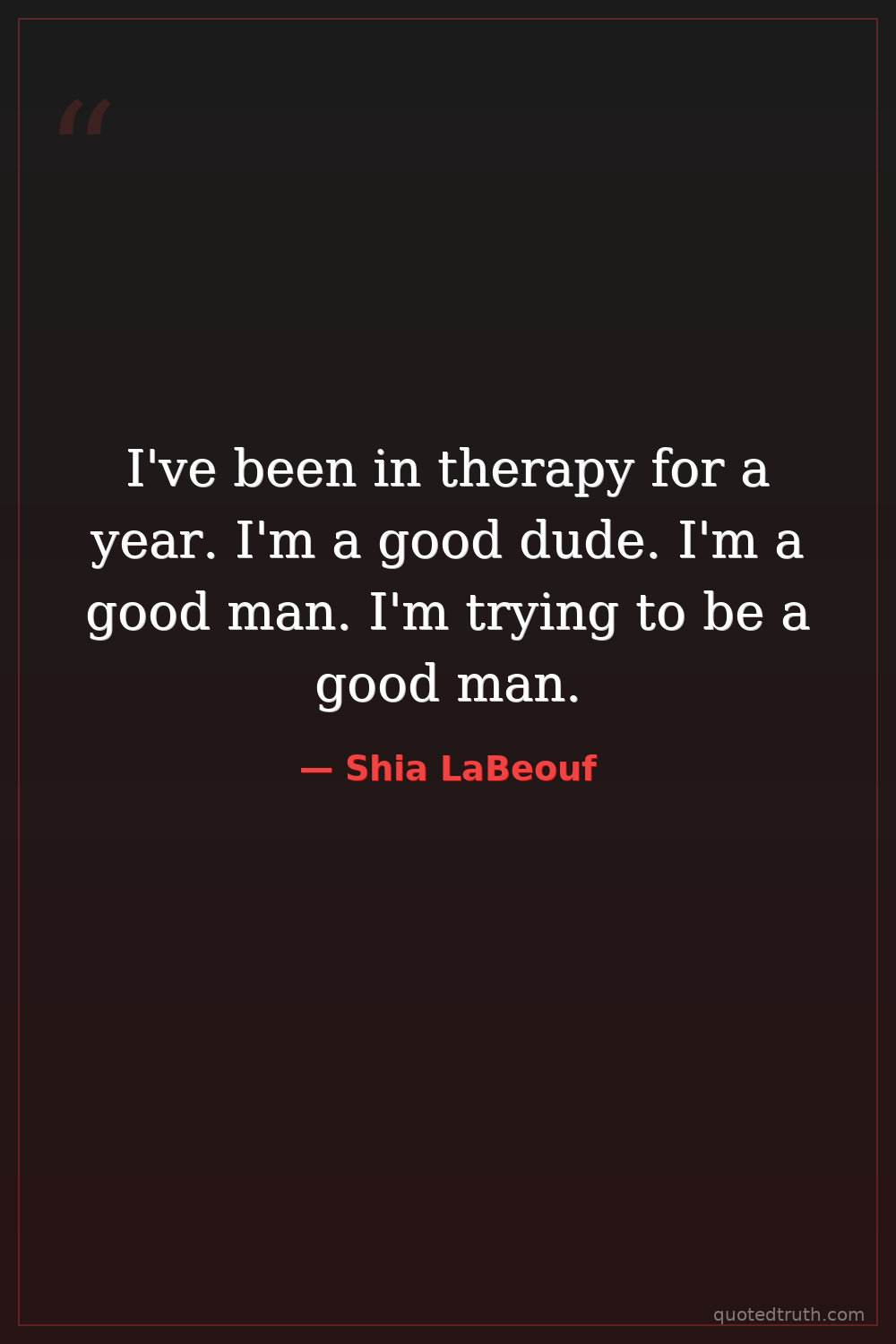 I've been in therapy for a year. I'm a good dude. I'm a good man. I'm trying to be a good man.