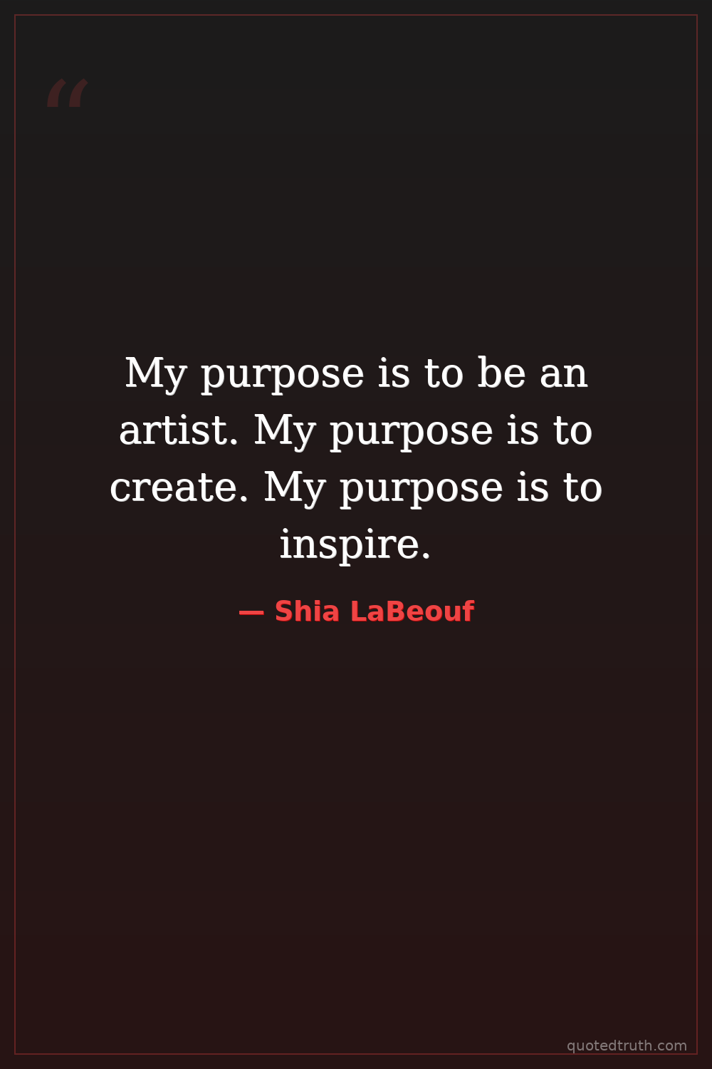My purpose is to be an artist. My purpose is to create. My purpose is to inspire.