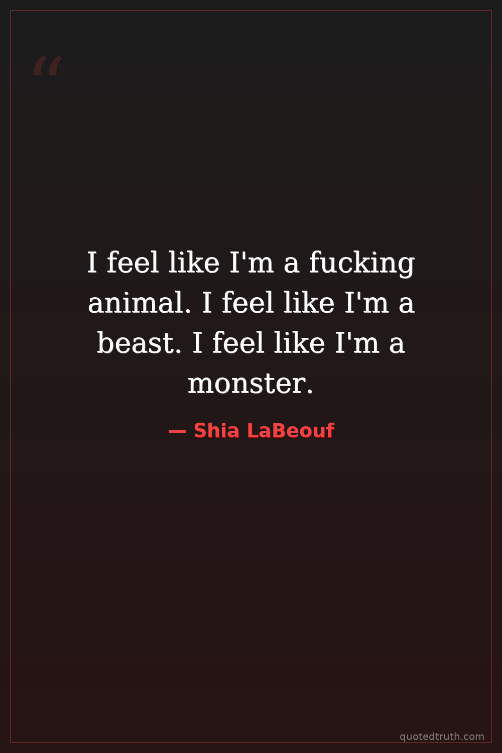 I feel like I'm a fucking animal. I feel like I'm a beast. I feel like I'm a monster.