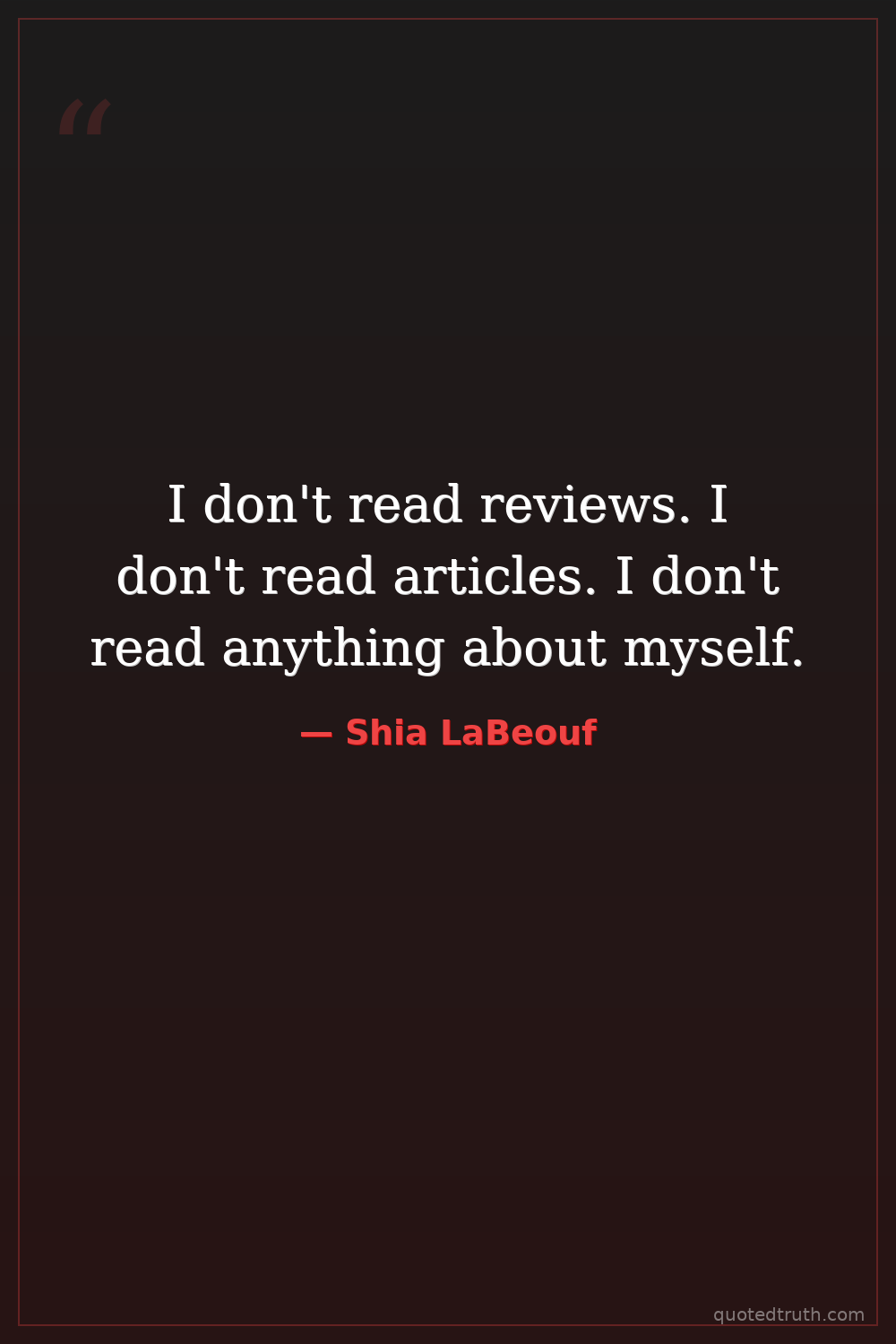 I don't read reviews. I don't read articles. I don't read anything about myself.