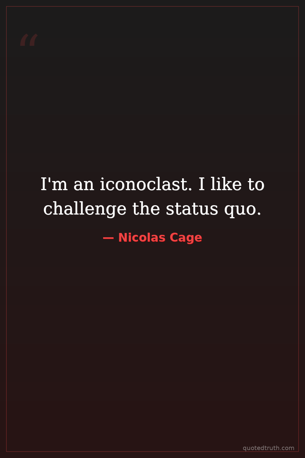 I'm an iconoclast. I like to challenge the status quo.