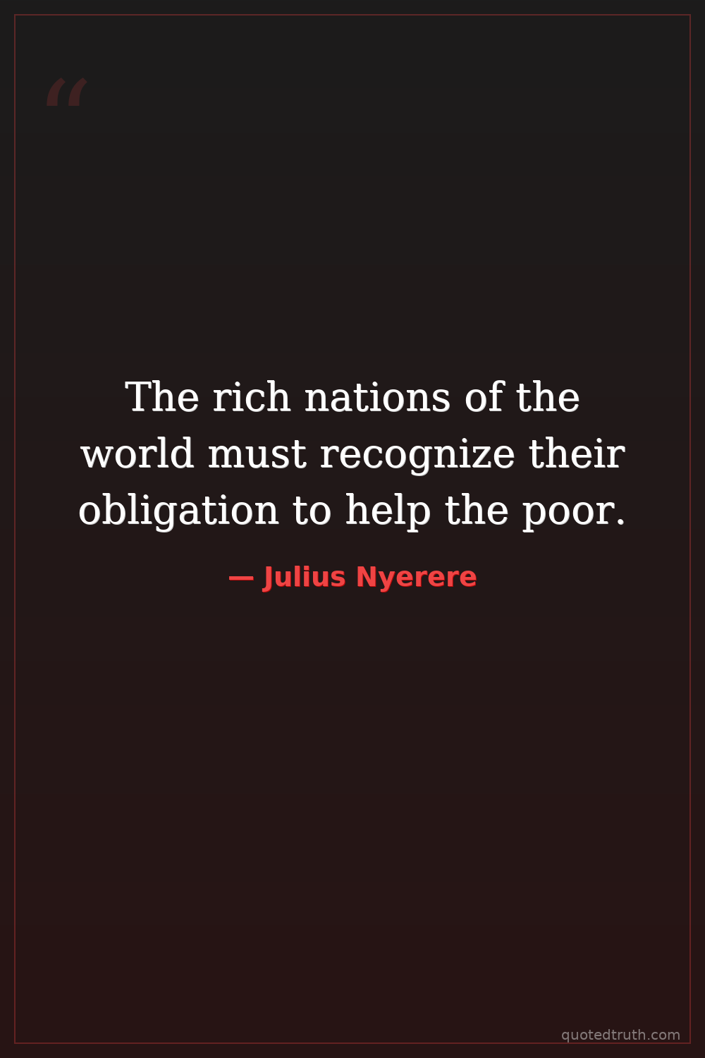 The rich nations of the world must recognize their obligation to help the poor.