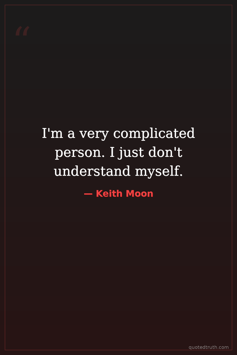 I'm a very complicated person. I just don't understand myself.
