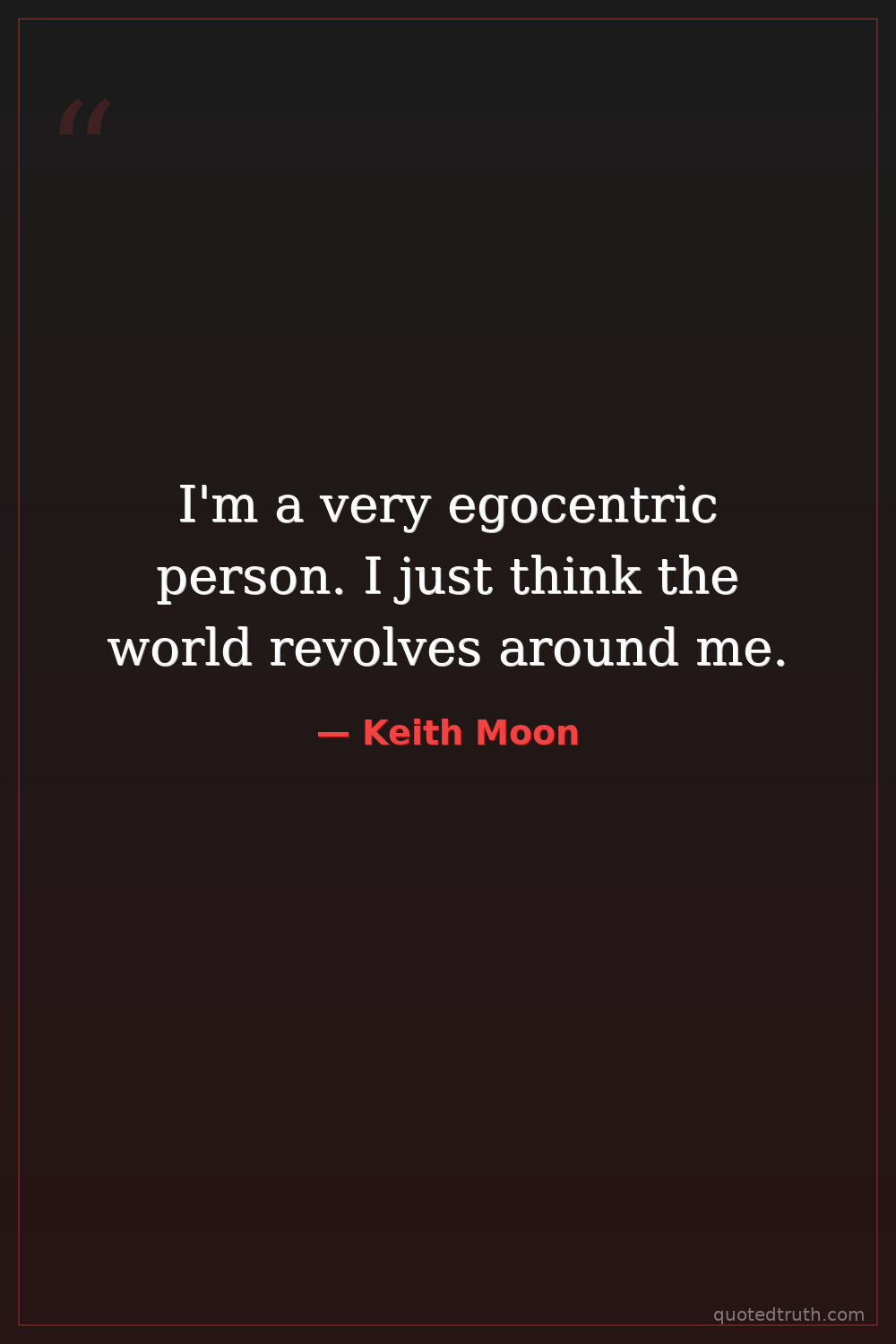 I'm a very egocentric person. I just think the world revolves around me.