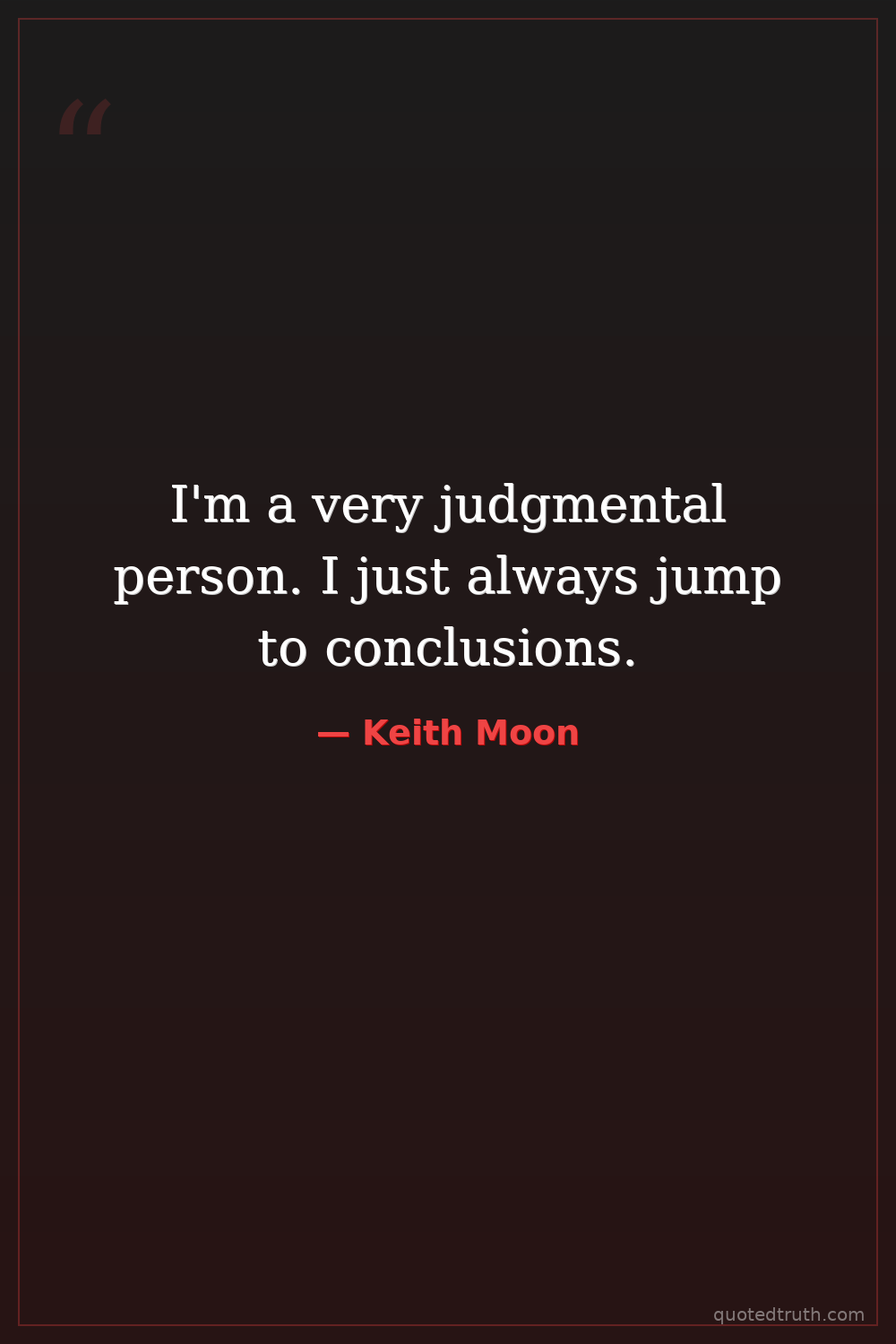 I'm a very judgmental person. I just always jump to conclusions.