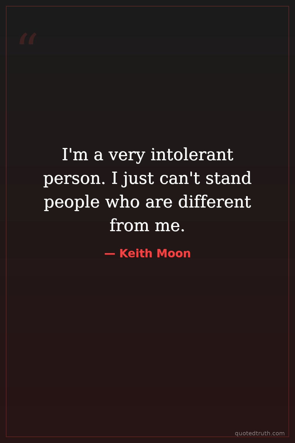 I'm a very intolerant person. I just can't stand people who are different from me.