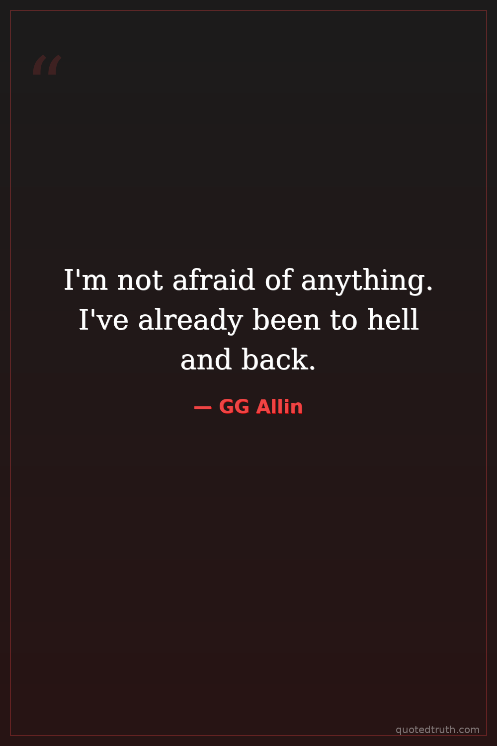 I'm not afraid of anything. I've already been to hell and back.