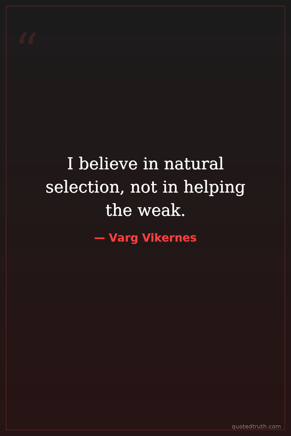 I believe in natural selection, not in helping the weak.