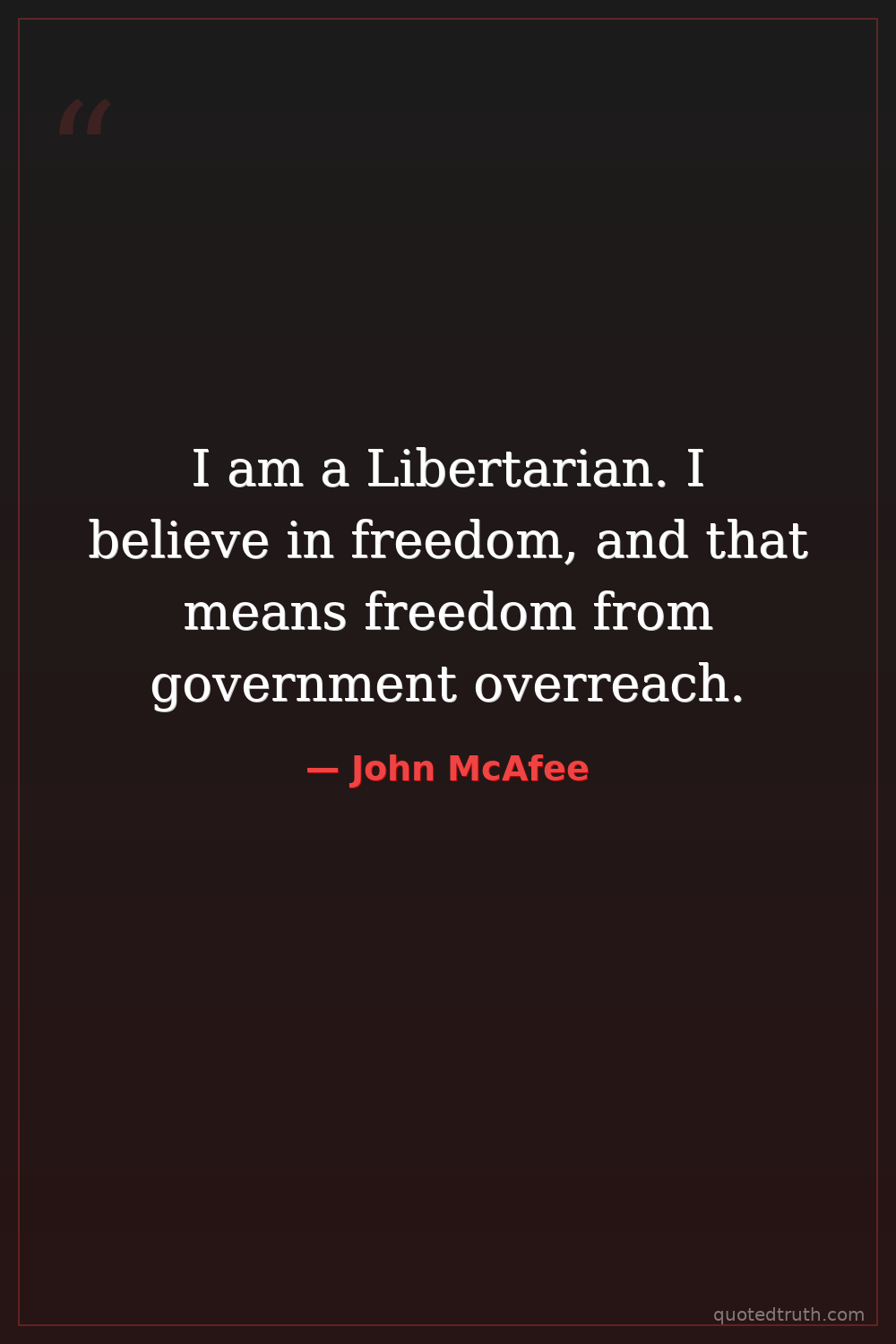 I am a Libertarian. I believe in freedom, and that means freedom from government overreach.