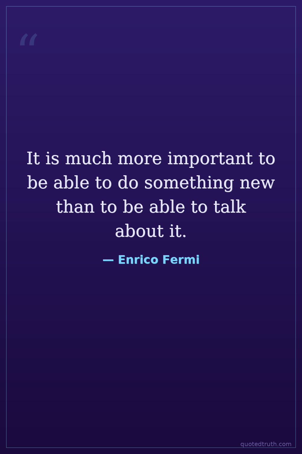 It is much more important to be able to do something new than to be able to talk about it.