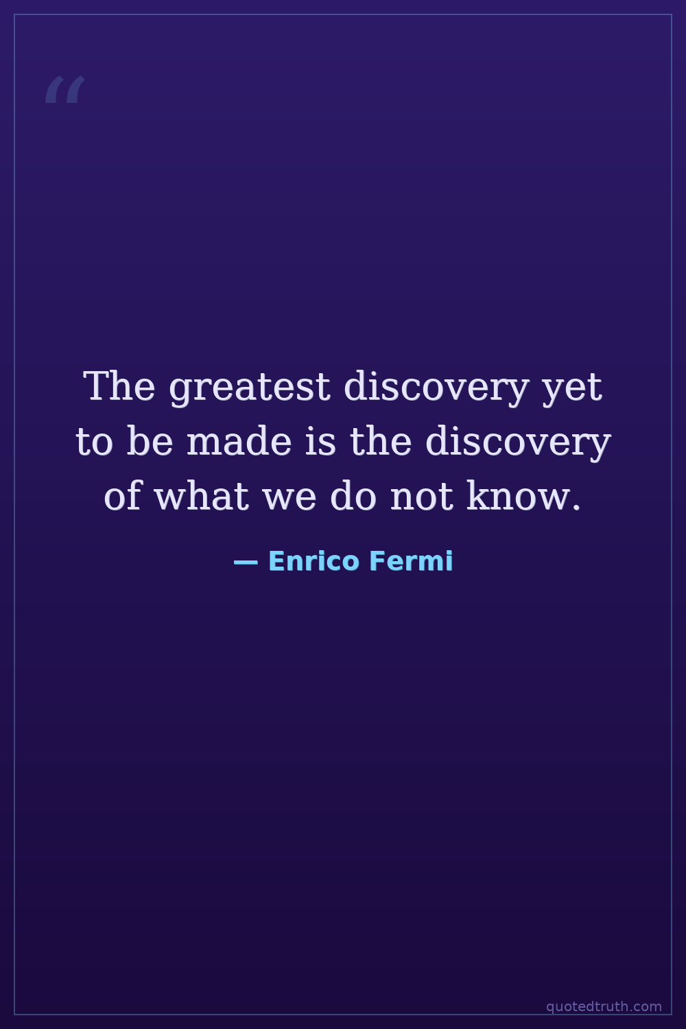 The greatest discovery yet to be made is the discovery of what we do not know.